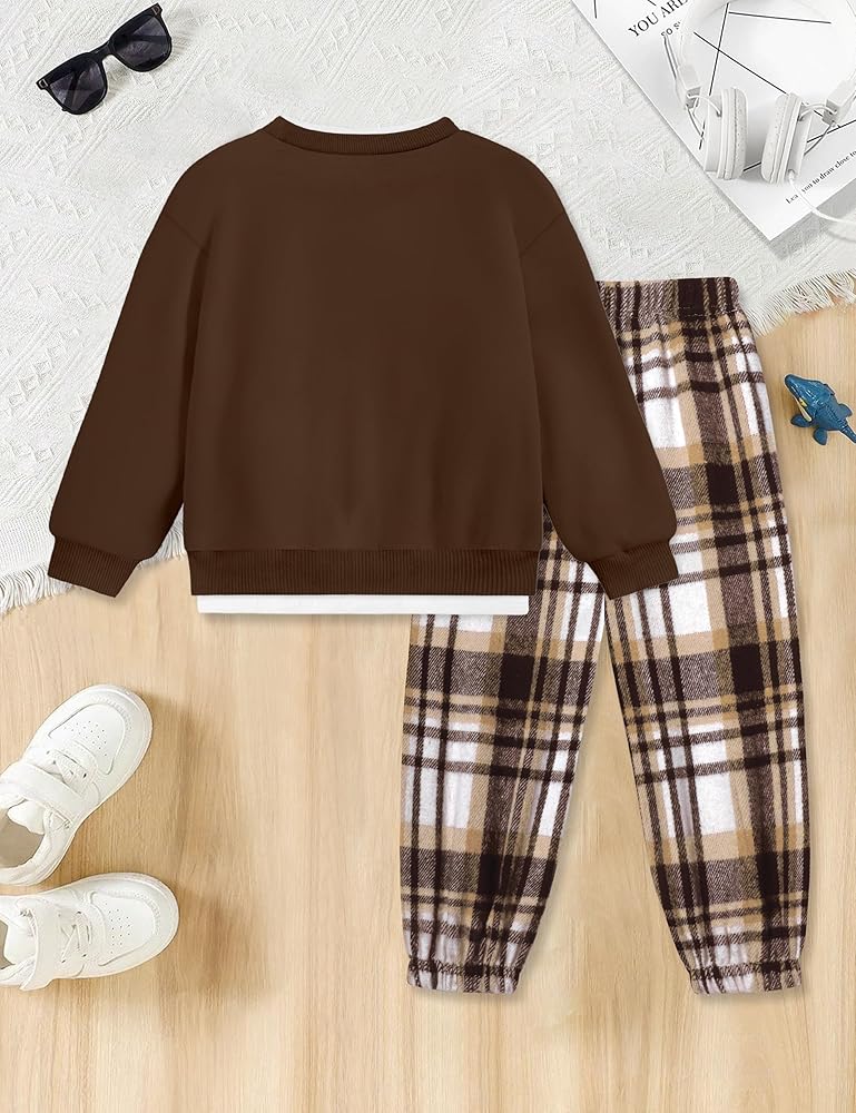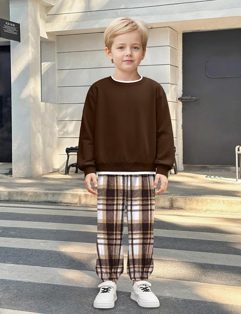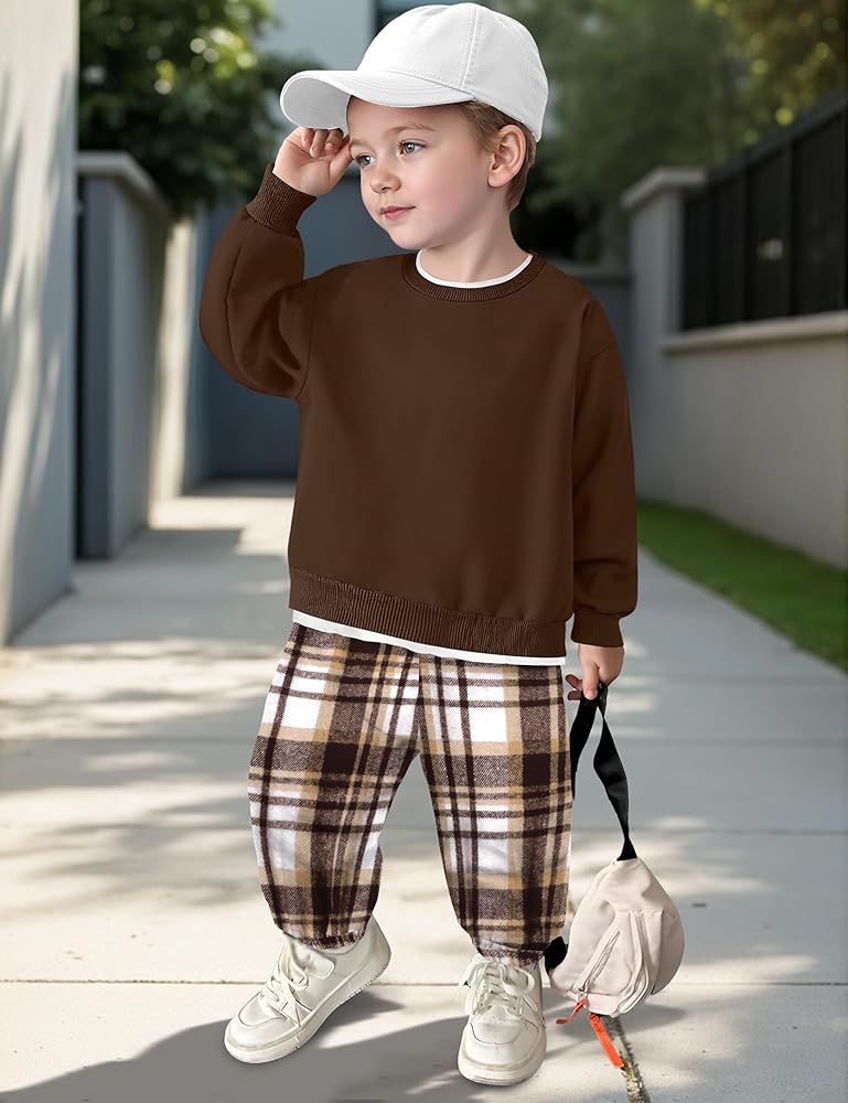 🍂 【【مجموعات】 1 × قميص Switshirt عالي المقنعين + 1 × السراويل منقوشة. ملابس الأولاد هذه هي الخيار المثالي للارتداء اليومي والأنشطة الخفيفة.