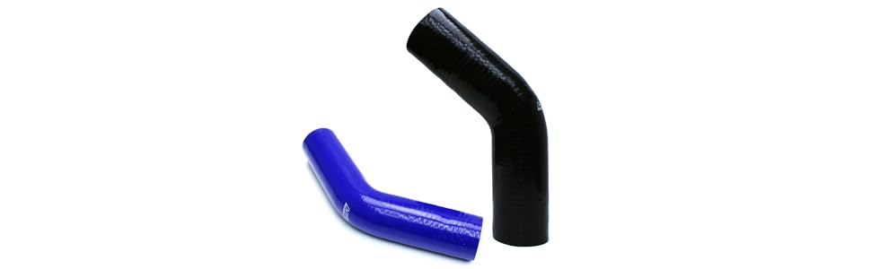 HPS 1 inch - 1-1/2 inch 4-ply Reinforced 45 Degree Elbow Reducer Silicone Hose Black 25 millimeter - 38 millimeter features 4-ply reinforced and knitted premium polyester fabric with high temperature silicone rubber, for which meet or exceed SAEJ20 Standard and is engineered for extreme temperature and various pressure ranges where high performance levels are required. HPS Silicone Hose is commonly used for joining two hard pipes while reducing the possibility of connections coming apart or having your hard pipes or other equipment break. HPS silicone hoses are used by professionals in industries such as high performance racing vehicles, commercial truck and bus, Marine, agricultural and off highway vehicles, turbo diesel, food and beverage, and general manufacturing industries. Temperature Range: - 65 degree Fahrenheit to + 350 degree Fahrenheit (177 degree Celsius). Silicone hose is compatible with water or anti-freeze such as coolant. Silicone hose is not compatible with fuel or oil.