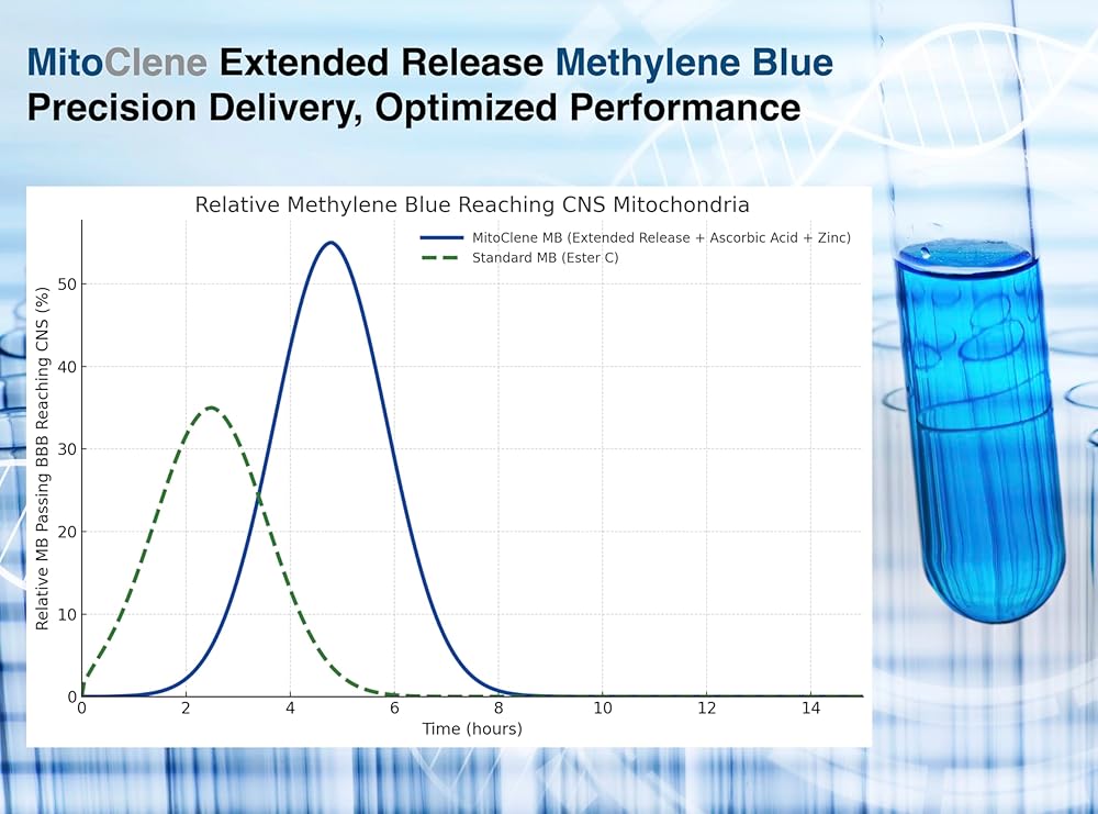 تتم دراسة امتصاص الدماغ المحسّن - حمض الأسكوربيك (فيتامين C) و MB بشكل جيد ويدعم التحويل الأمثل إلى Leucomb ، ومساعدة مرور حاجز الدم والدم المتفوق وتركيزات الجهاز العصبي المركزي العالي.