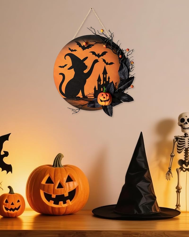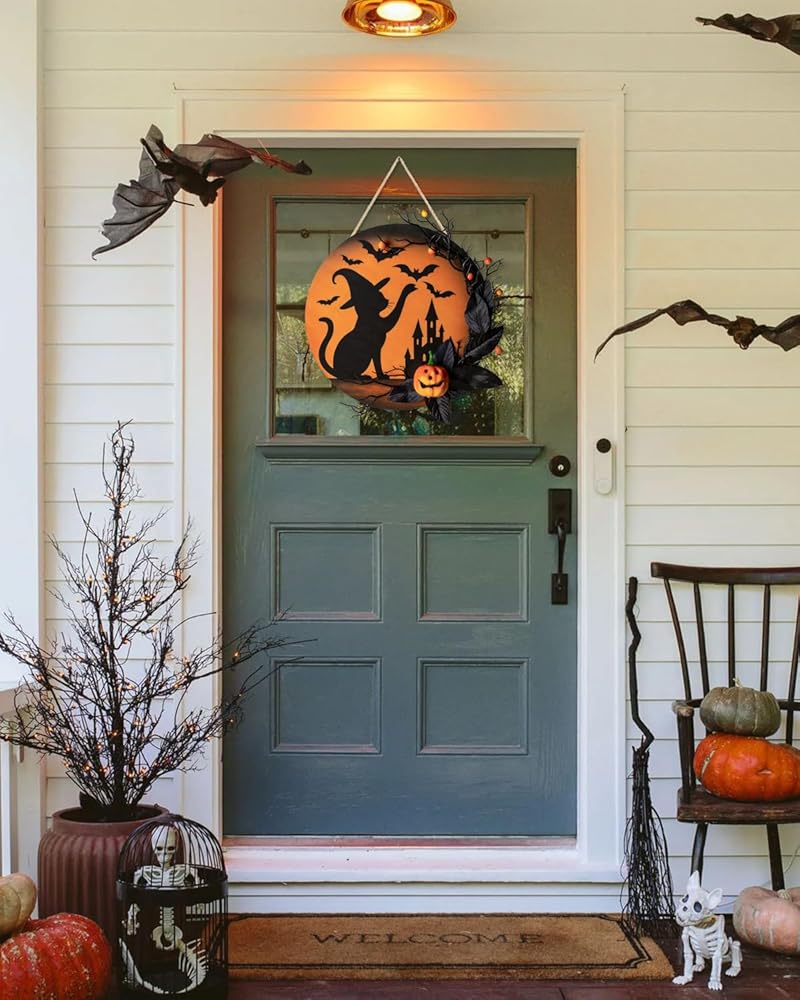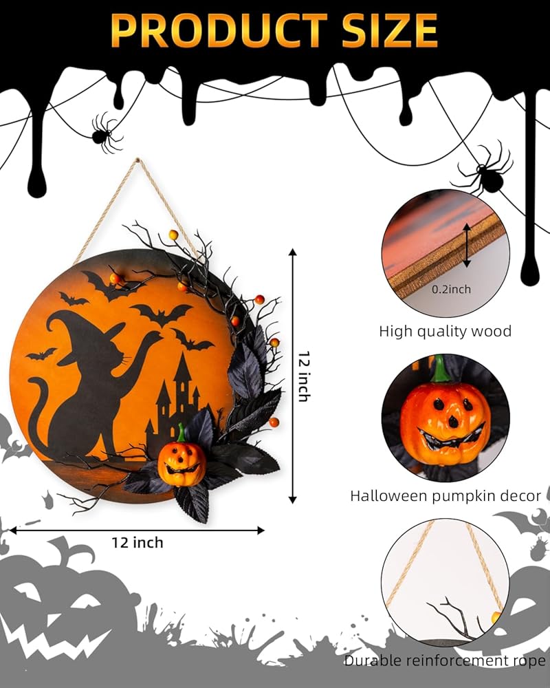 ترحيب الخريف الدافئ: احتفل بجمال هذا الموسم مع إكليل الزهور المصنوع يدويًا والذي يتميز بأوراق برتقالية وأحمر وخضراء نابضة بالحياة ، معلمة بتوت صغير من اليقطين. تجلب علامة "الترحيب" الخشبية الريفية في شكل اليقطين سحرًا مريحًا إلى بابك الأمامي أو الحائط ، مما يخلق جوًا جذابًا للموسم بأكمله.