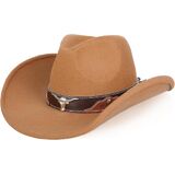 Size:One-size-fits-most adjustable cowboy hat. (Felt hat circumference: 57-59 cm/22.44"-23.22"; brim width: 9.5 cm/3.74"; hat height: 12 cm/4.72") Includes an interior elastic band for a secure, comfortable fit on all head shapes and sizes, unisex-friendly.