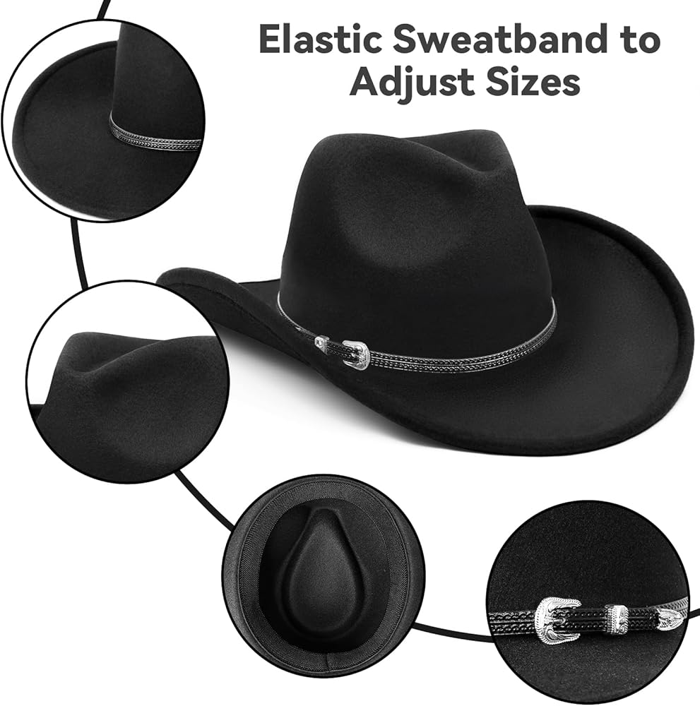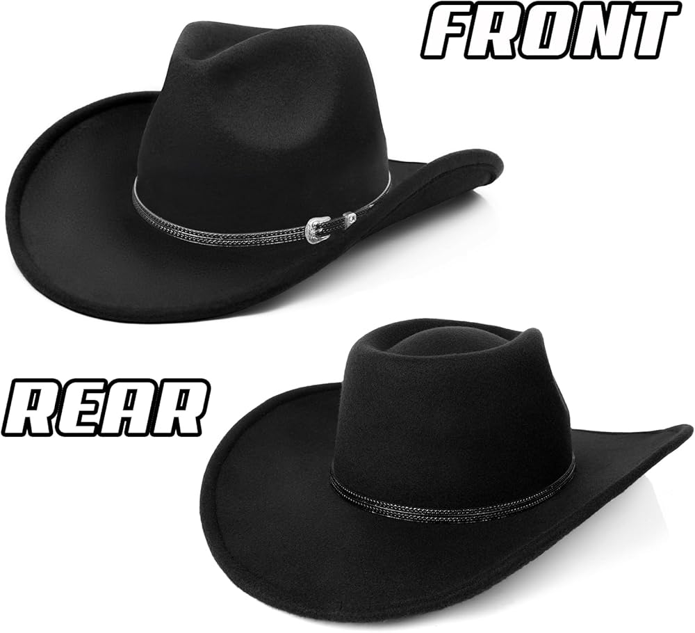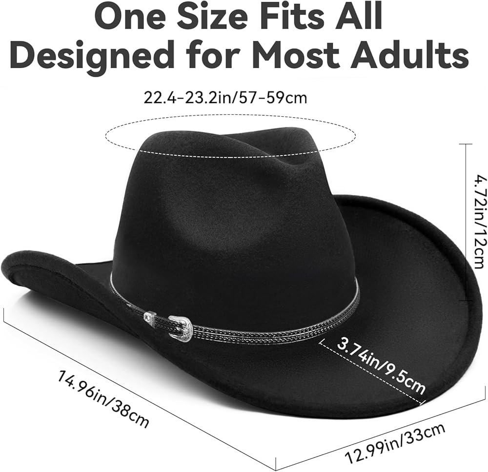 Timeless Western Design: These felt cowboy hats feature a classic western design with Buckle Belt(or rhinestone tassel hat band), wide brim,fashion but classical.