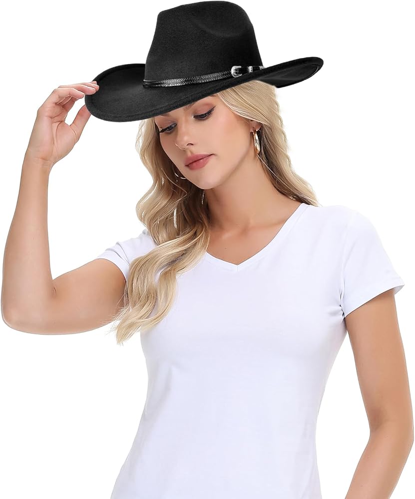 Breathable: These felt cowboy/cowgirl hats are breathable and comfortable design. with a long 3.35 inch brim that provides glorious shade to your face, block harmful sun rays from the eyes and face. Great for casual wear everyday.