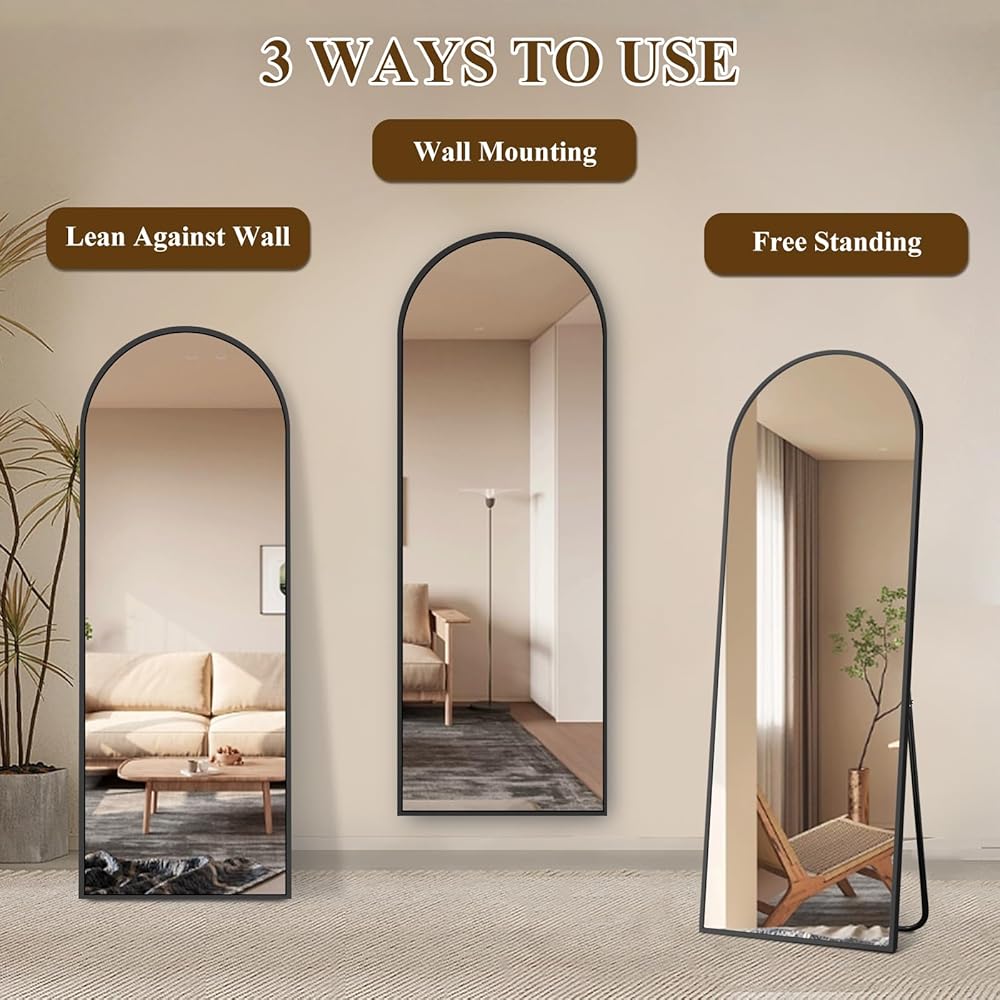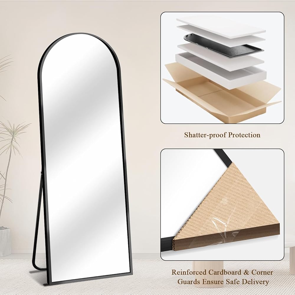 56 "x18" مرآة كاملة الطول مع حامل ، مرآة أرضية مقوسة مقاومة ، إطار رفيع من سبيكة الألومنيوم - مستندة قائم بذاته/حائط/جدار لغرفة النوم وغرفة المعيشة والمدخل (أسود)