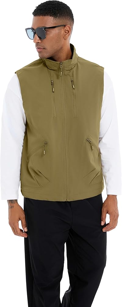 • تصميم طوق مقاوم للرياح ، سترة بلا أكمام للرجال مع إغلاق zip ، من السهل وضعها وإيقافها