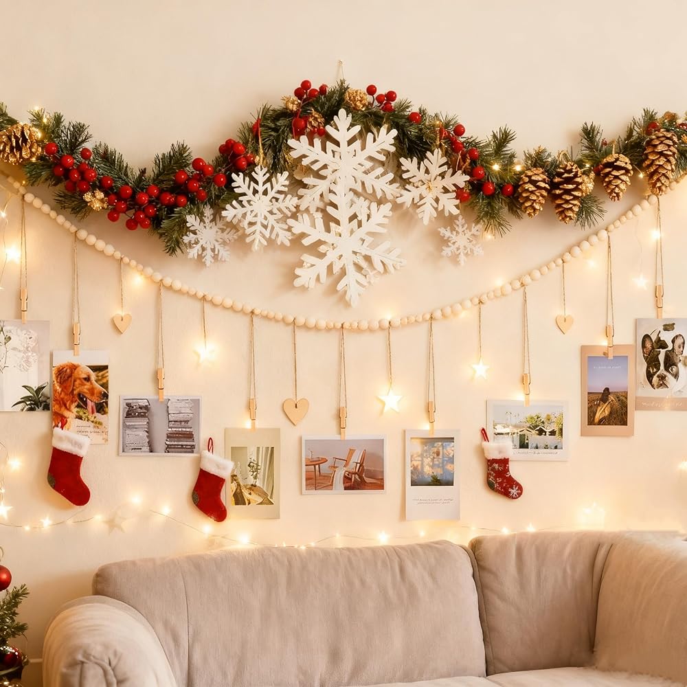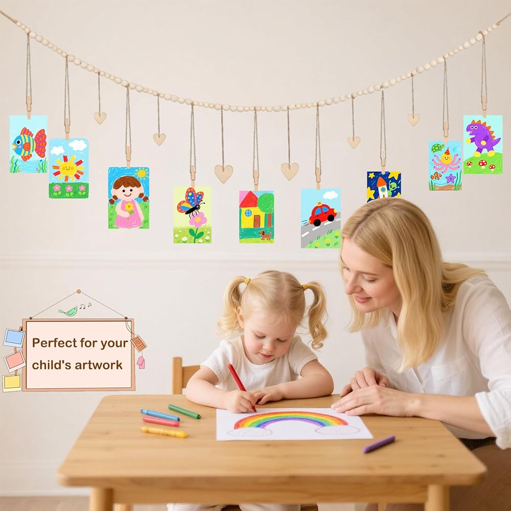 سيناريوهات قابلة للتطبيق على نطاق واسع : رف عرض الصور المعلق هذا متعدد الاستخدامات لعرض الصور اليومية ، والبطاقات البريدية للسفر ، والأعمال الفنية الإبداعية ، ورسومات الأطفال ، وبطاقات العطلات ، وأي عناصر تشبه البطاقة التي تريد عرضها. خاصة خلال عيد الميلاد ، فإن بطاقات عيد الميلاد التي تضم عناصر مثل رقاقات الثلج والرنة وأشجار عيد الميلاد إلى الحبل المعلق ، إلى جانب الملمس الطبيعي للخرز الخشبي ، يخلق على الفور أجواء عيد الميلاد الدافئة والغنية في المنازل ، والفصول الدراسية ، أو الاستوديوهات ، وتخدم كل من الأزياء اليومية وأراضي العطلات.