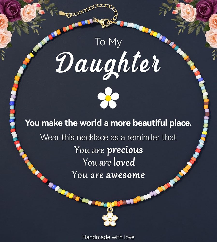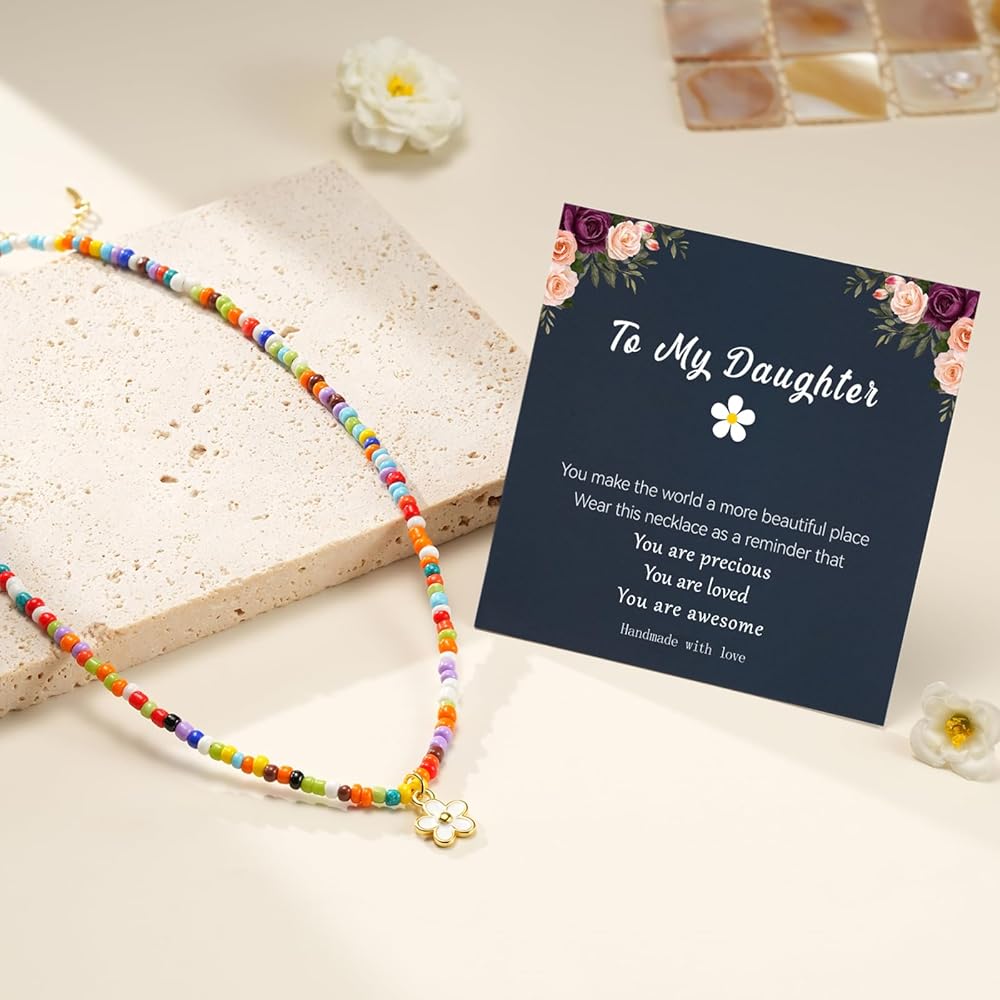 JQVLOVE Handmade Daisy Beaded Necklace — A Gift to Brighten Her Day
