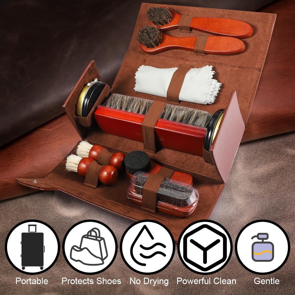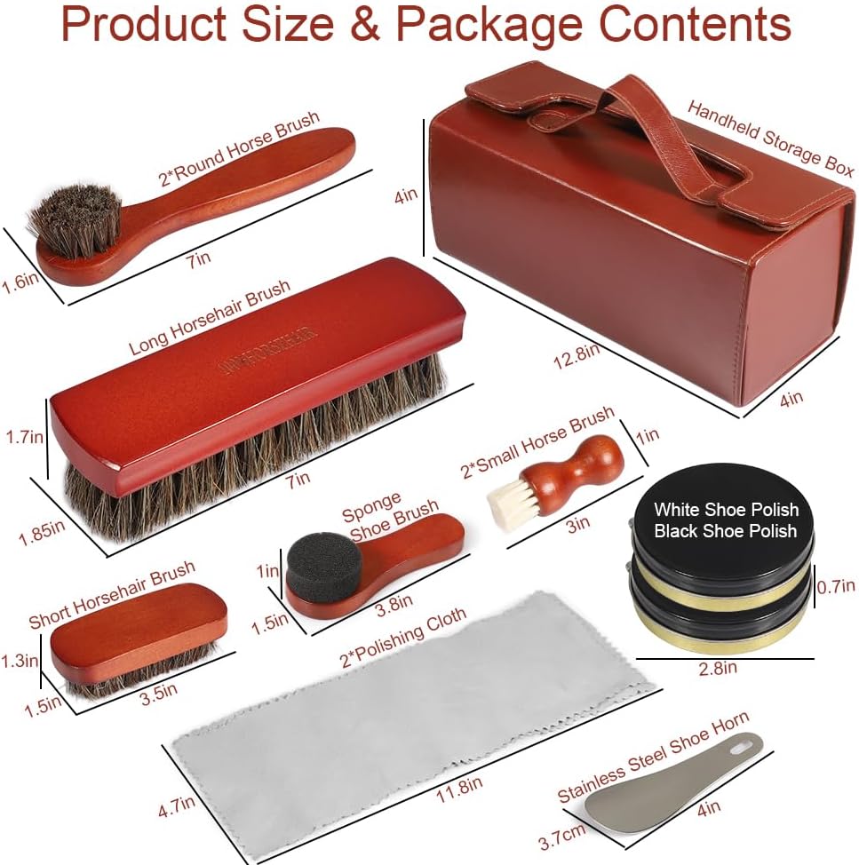 Portable & Organized - Compact red case (10x4x4 inch) stores all tools. Ideal for travel, home, or office use—keeps shoes pristine for leather business, casual, or cowboy boots.