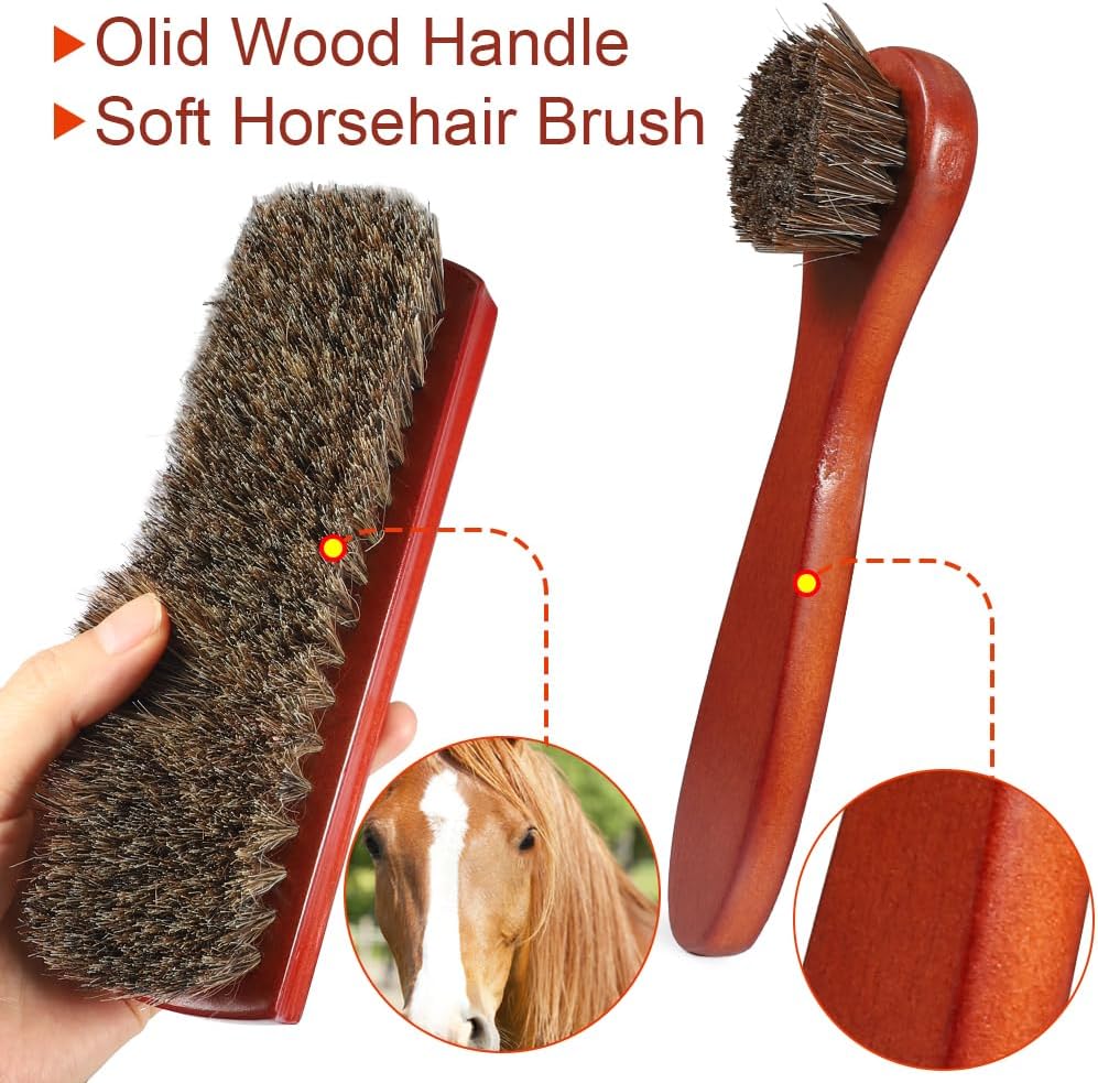 Gentle Horsehair Brushes - Soft, durable horsehair (not boar bristle) cleans and polishes leather without scratching. Removes dust, revives shine.