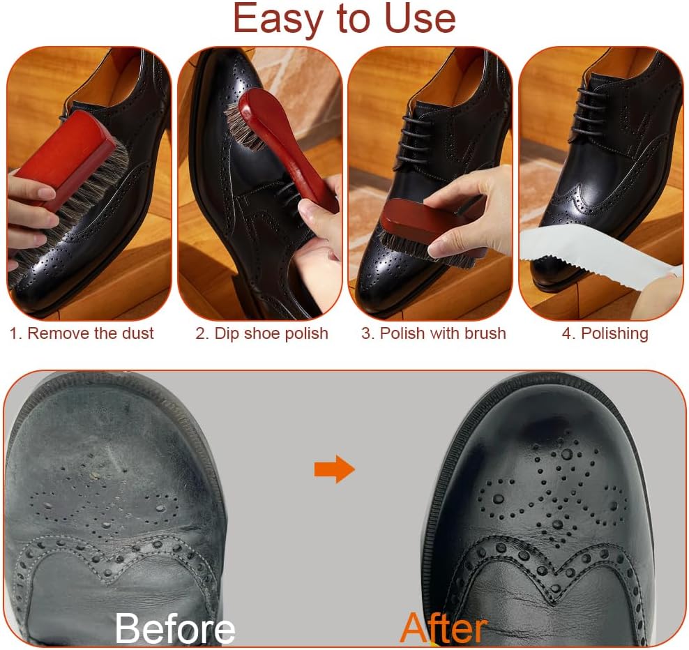 Picowe 13 PCS Shoe Shine Kit , Leather Boot Care Set with Real Wood Handle & Horsehair Brush, Black & Neutral Polish, Portable Travel Shoe Cleaning Kit