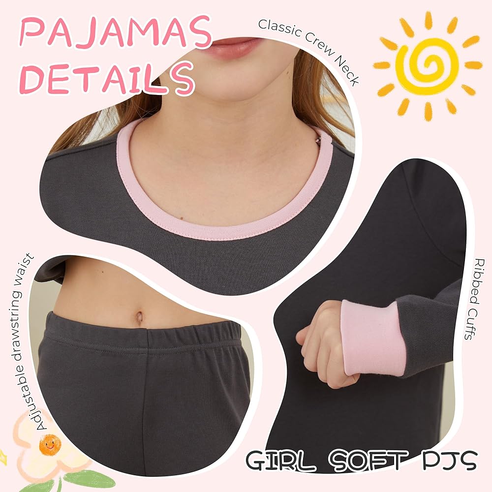 • مريح: تتميز مجموعة Pajama للبنات هذه بملاءمة ضئيلة وخط عنق الطاقم الكلاسيكي ، مما يجعل من السهل على الآباء وضعها والإقلاع ، مع السماح للأطفال بالتحرك بحرية والنوم بشكل سليم دون تقييد.