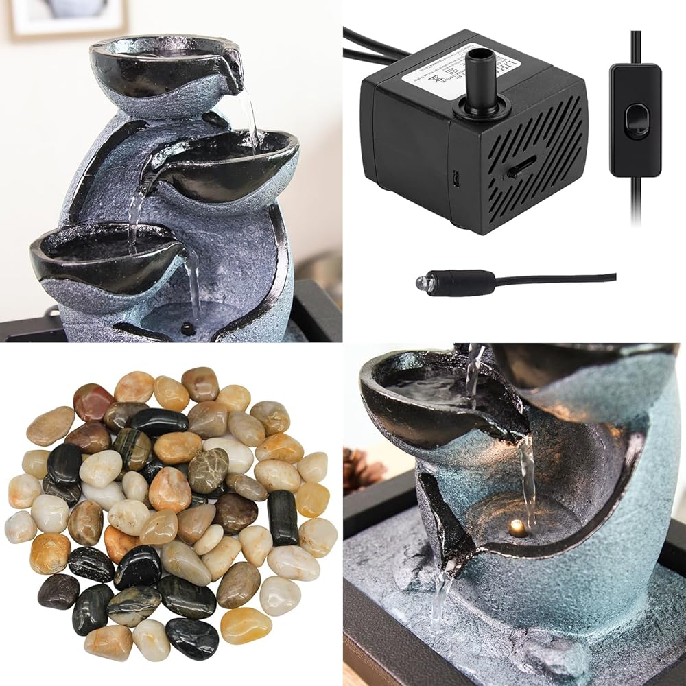 【Pump with On Off Switch】Quiet, built-in, submersible pump automatically circulates the water, keeping it free of algae buildup; plug the corded power supply into an outlet to turn on; flip the off switch to turn off. Just add enough water and turn on the power supply.