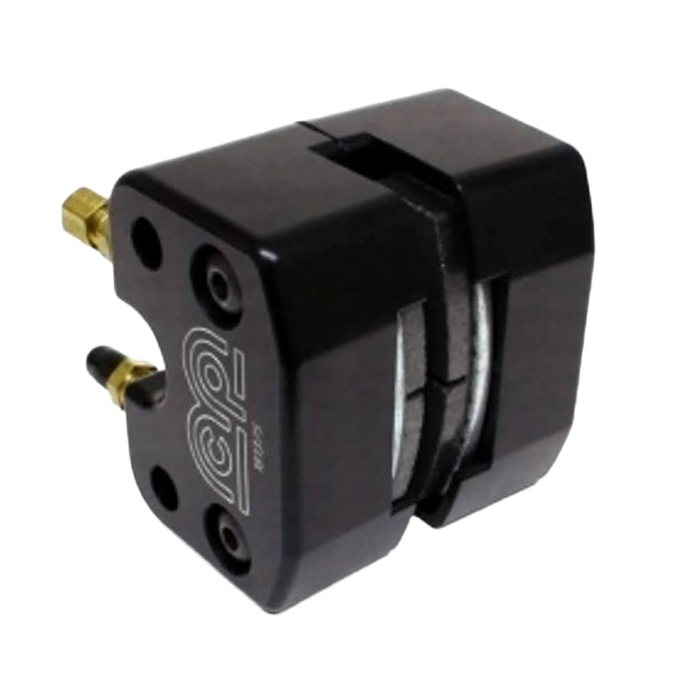 This billet caliper assembly is for .250" wide brake rotors, but can be adjusted for a range between .125" to .250". For use with 3/16" nylon brake line, and comes with pads, fittings,and bleeders.