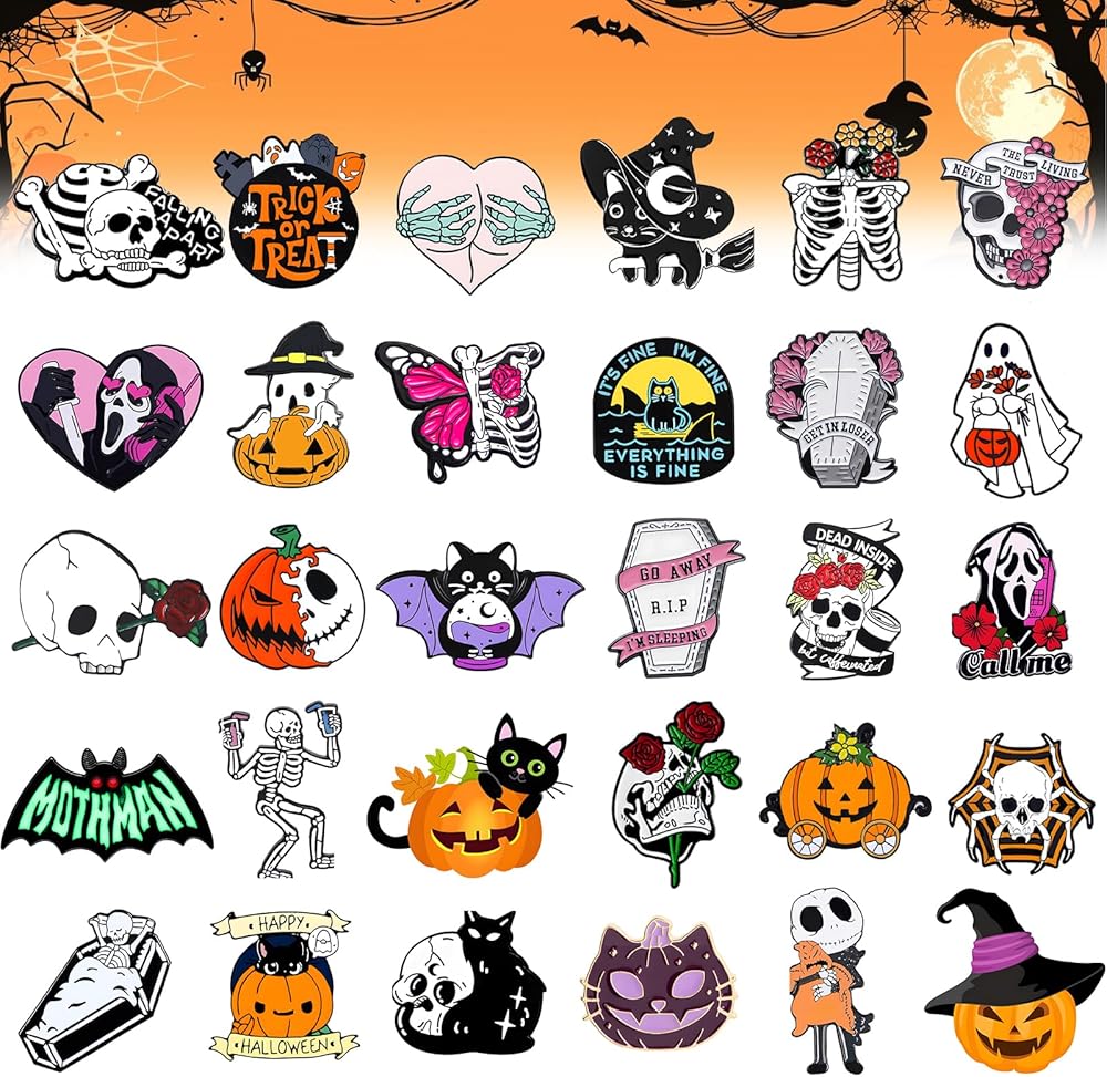 - موضوع عيد الهالوين: 30 أنماط بانك لطيف هالوين بروش مجموعة - القط ، شبح ، جمجمة ، قرع ، دبابيس زخرفية للملابس ، القبعات ، حقائب الظهر