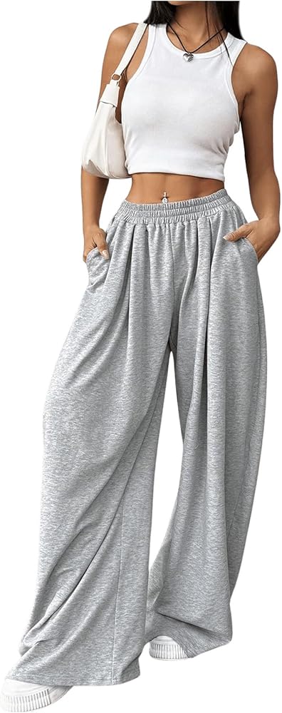 • The wide leg design allows for ample movement, while the drawstring waist provides an ideal fit that flatters most body types. Look great with your tanks, sweatshirts, bomber jackets, varsity jackets, workout tops, casual tees, or lounge tops