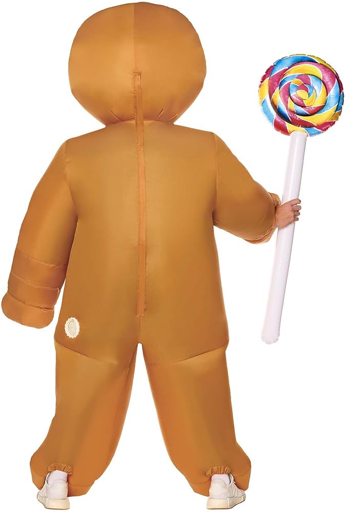â This officially licensed Gingy Inflatable Costume is perfect for Halloween! This costume is one size fits most. â This costume brings the magic of Shrek to life. It includes an inflatable costume, lollipop prop, and audio chip. Note: 1 4LR44 6V battery is required (not included). â Crafted from polyester, this costume ensures you stay comfortable during trick-or-treating, Halloween parties, or cosplay events! â This officially licensed costume, with a convenient zipper closure, lets you quickly transform into your favorite character, making Halloween hassle-free! â Not my gumdrop buttons! To keep this costume looking its best, always spot clean to avoid wear and tear.