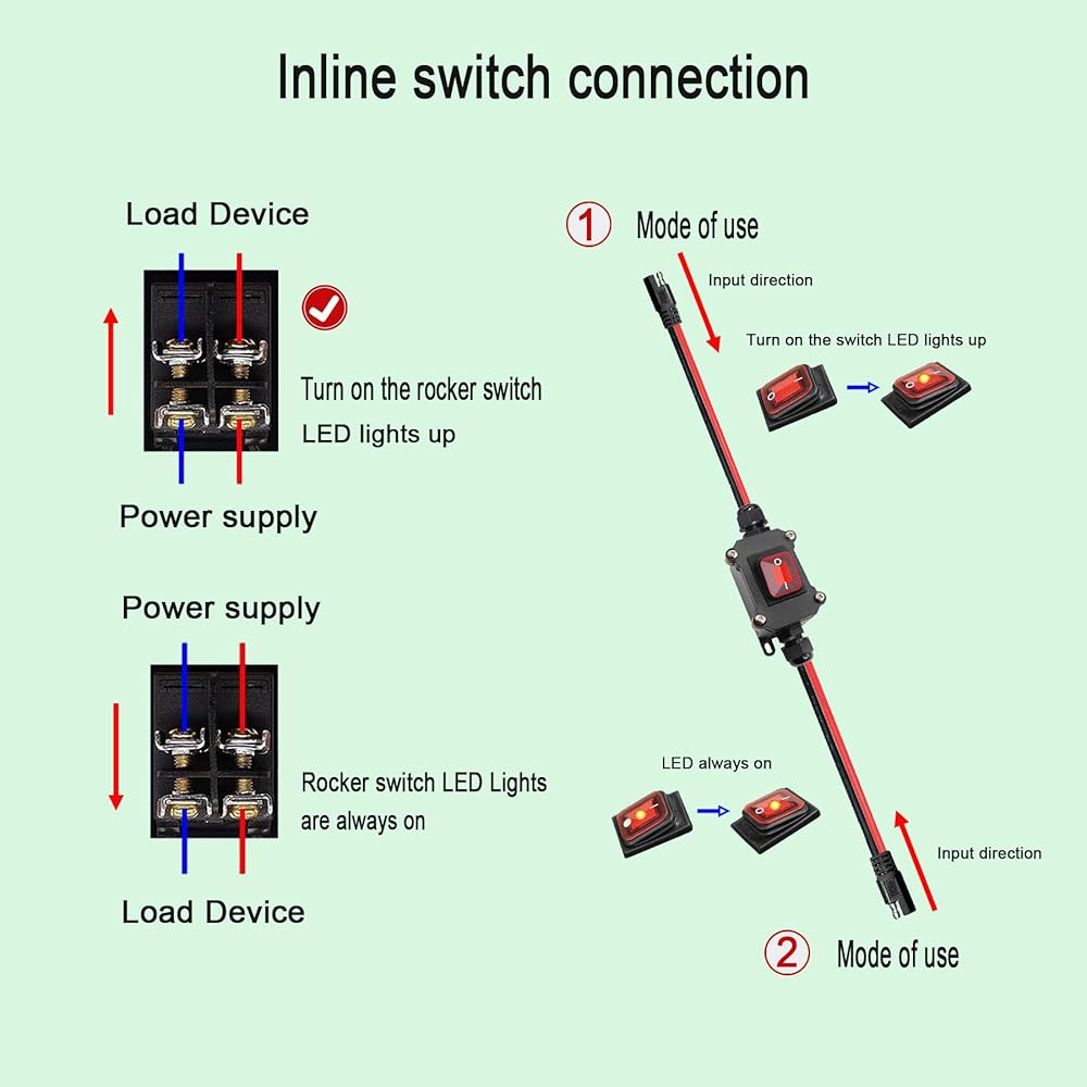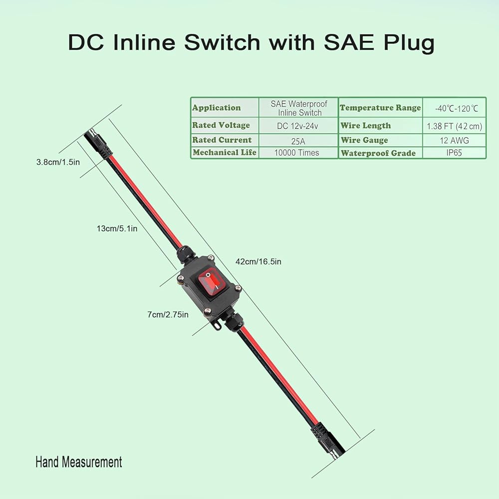 【تطبيق واسع】: مفتاح الحبل المضمّن هذا هو DC 12V 25A. يعد مفتاح الطاقة مناسبًا للألواح الشمسية والدراجات النارية و RVS و ATVs ومزولات الطاقة والأجهزة الأخرى التي تتطلب سدادات SAE.