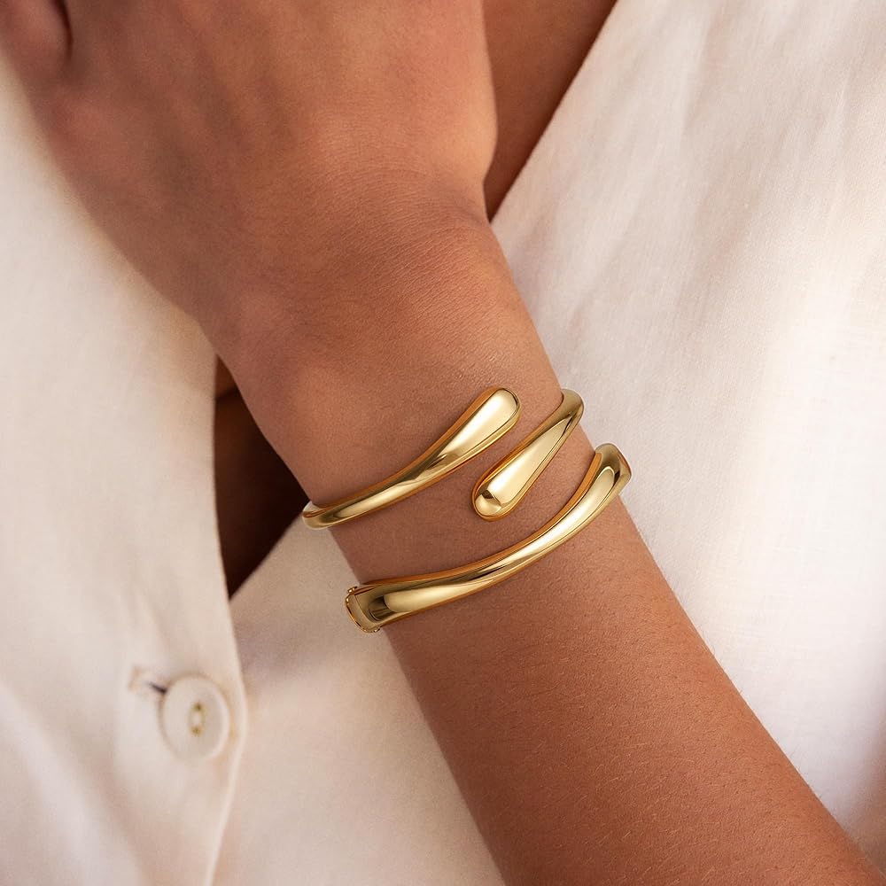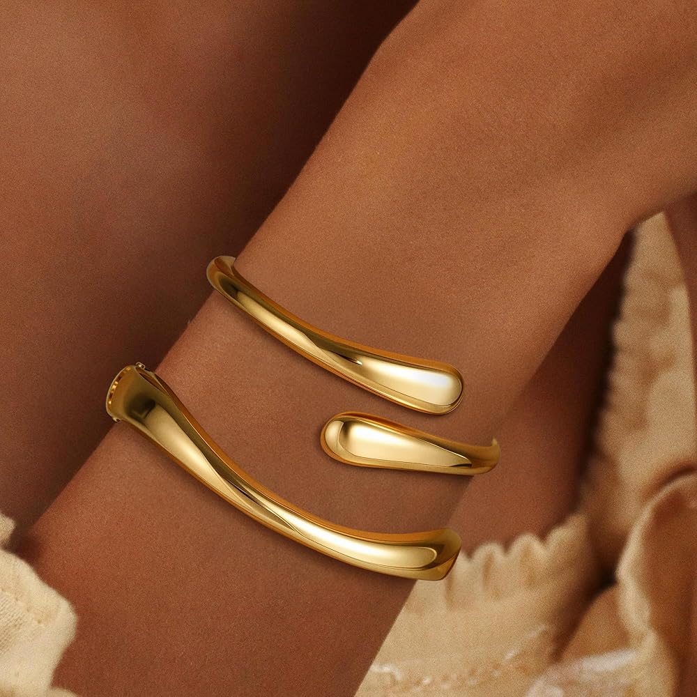 التصميم: يتميز سوار الإسورة الذهبية بتصميم أنيق وحديث ومكتنز ، مما يجعله ملحقًا مثاليًا لرفع أي جماعة. يضيف شكل عناق الفريد لمسة من التطور والأناقة ، مما يجعله مثاليًا للنساء والمراهقين على حد سواء الذين يقدرون المجوهرات الموضة.
