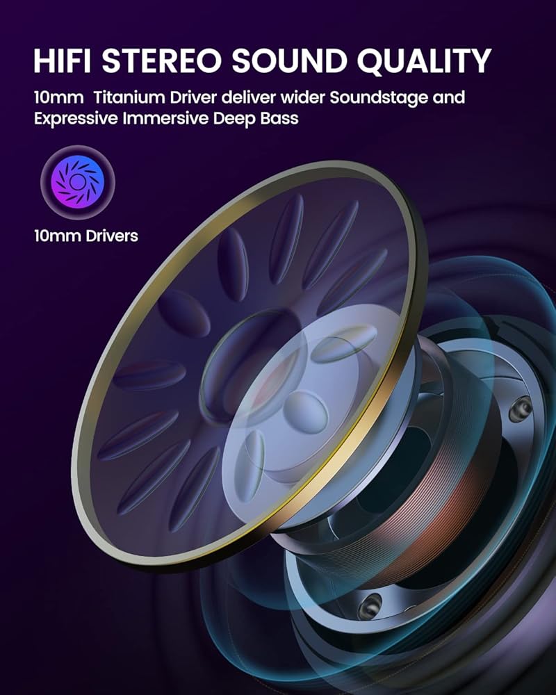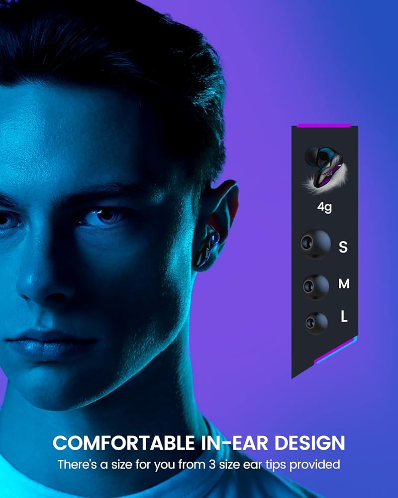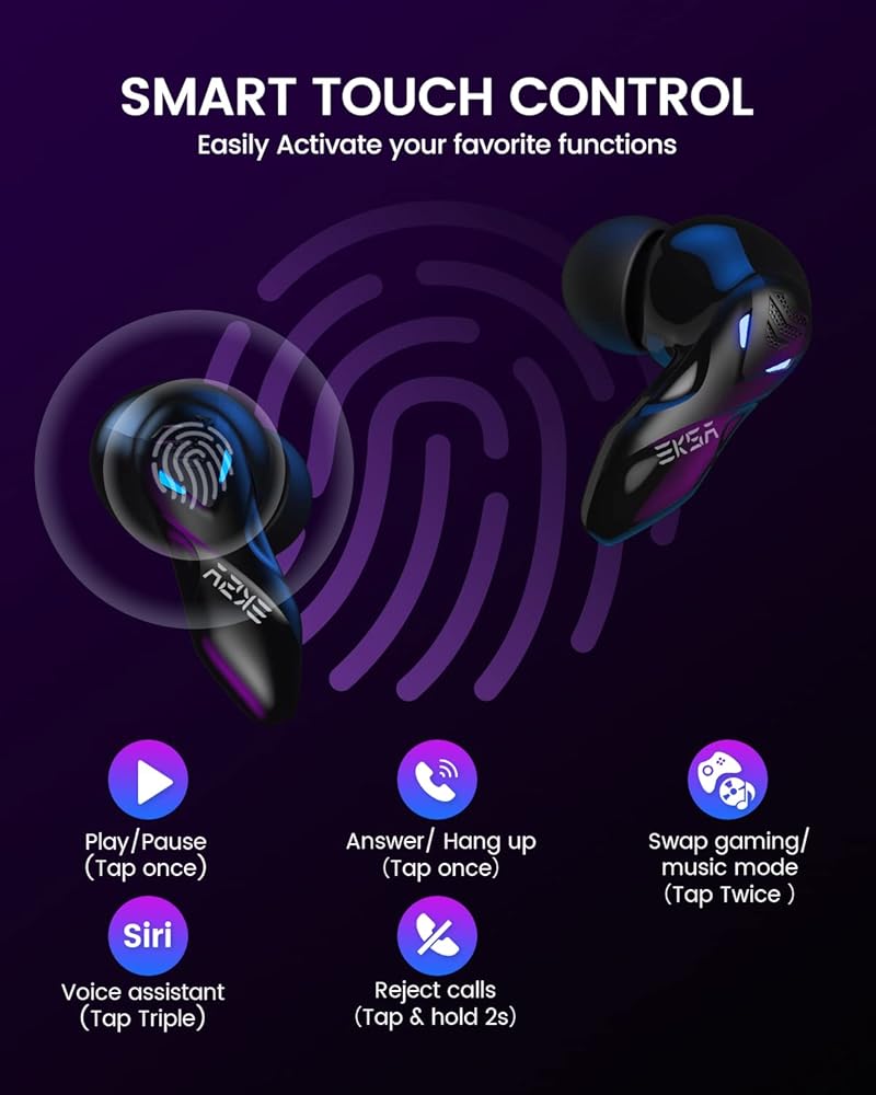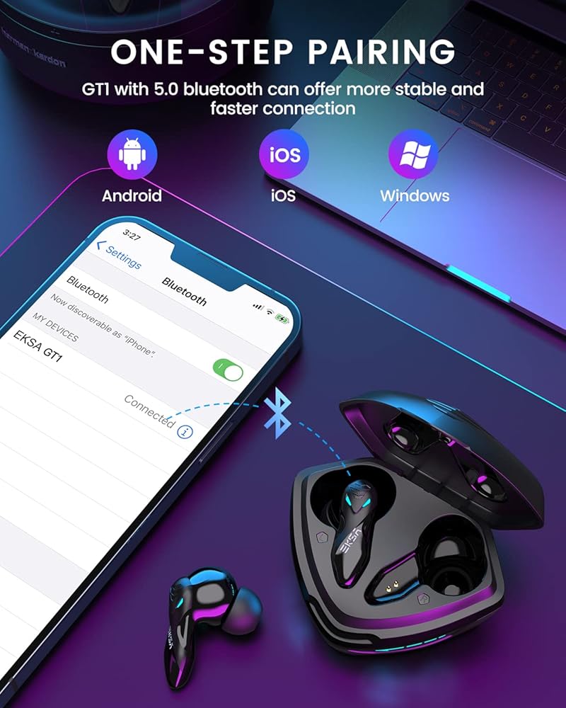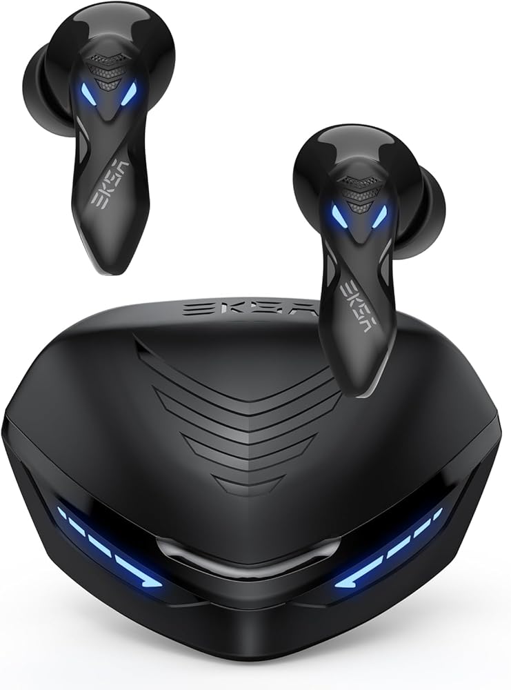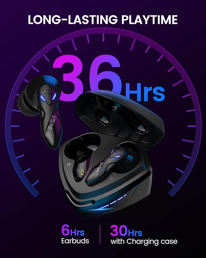 سماعات أذن لاسلكية EKSA GT1 مع زمن وصول منخفض للغاية 45 مللي ثانية، سماعات أذن بلوتوث للألعاب مع صوت ممتاز، بلوتوث 5.0، برامج تشغيل 10 مم، 4 ميكروفونات فائقة الوضوح، مقاومة للماء IPX5، وقت تشغيل 36 ساعة، ملاءمة مريحة