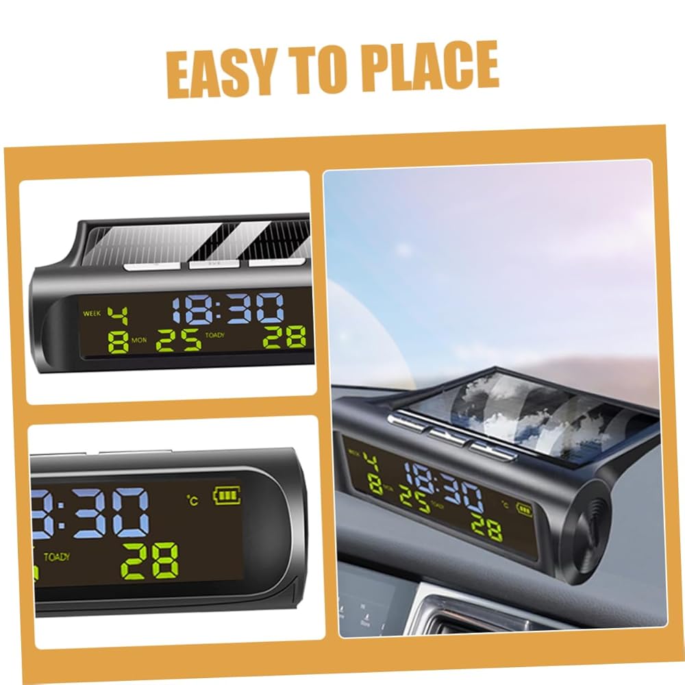 -Easy to place and by solar powered design, the car digital clock bring you good using clocks and temperature.