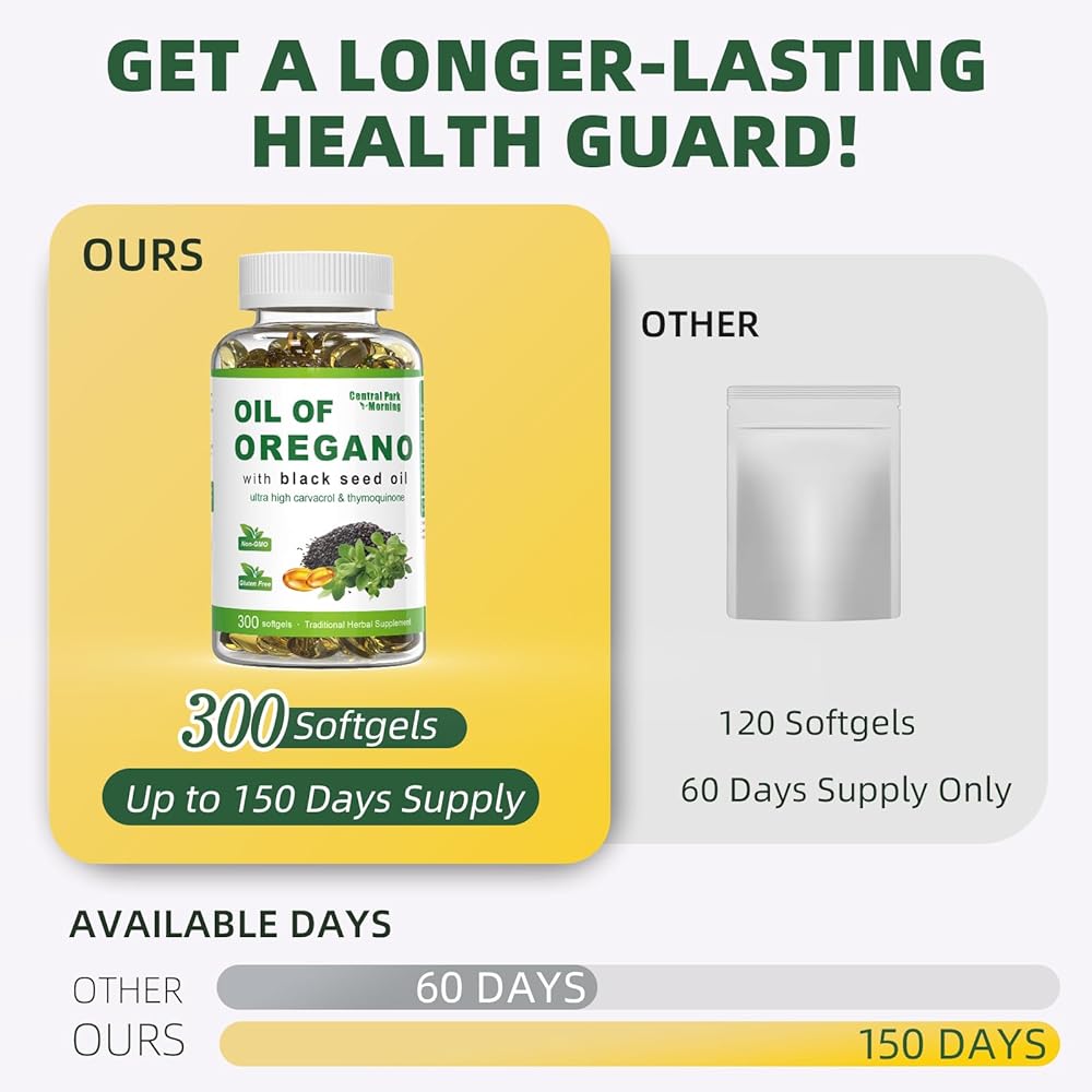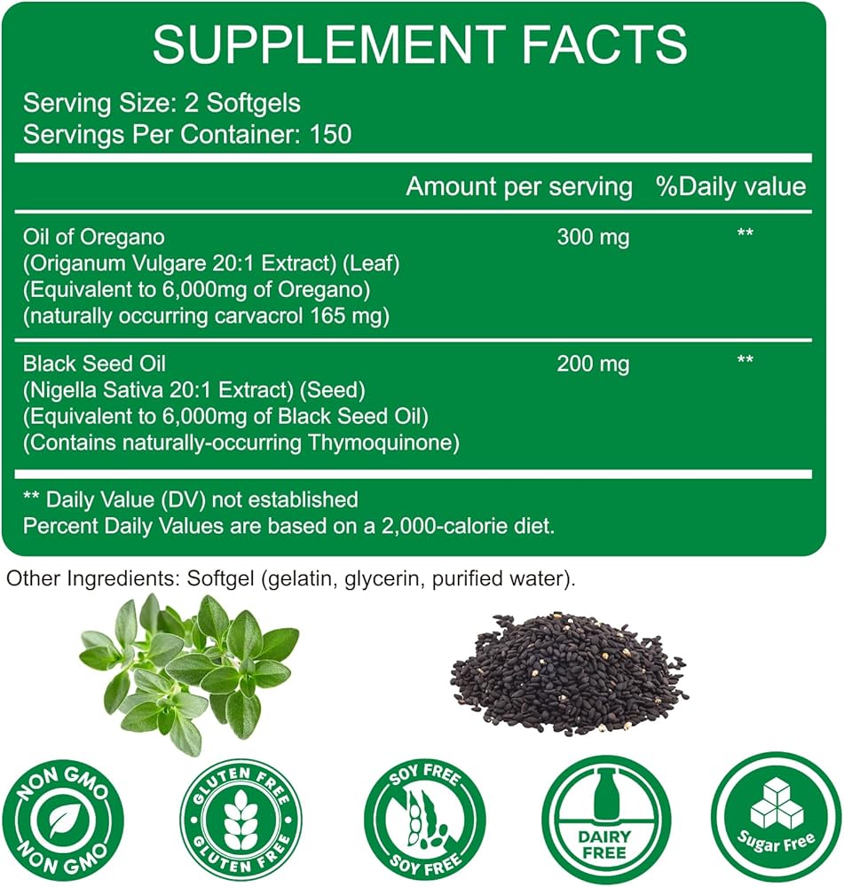 زيت أوريجانو 300 ناعمة مع زيت البذور الأسود ، 2 في 1 مزيج مع زيت الأوريجانو وزيت البذور الأسود ، مضادات الأكسدة الطبيعية ، غير المعدلة وراثيا ، خالية من الغلوتين