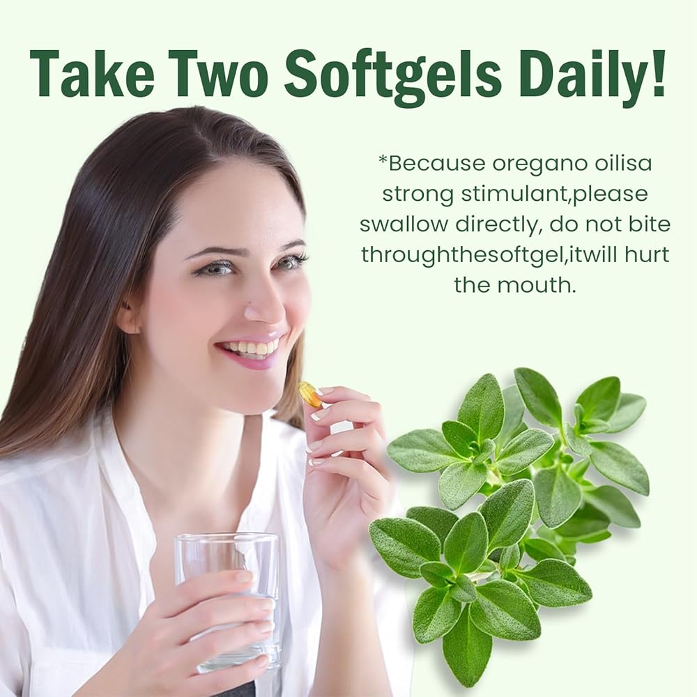 【2 في 1 زيت من Oregano softgel】 كل كبسولة زيت الأوريجانو هي مزيج عضوي طبيعي من زيوت الأوريجانو والبذور السوداء ويشمل أيضًا كارفكرول والثيموكينون لتعزيز المناعة ، وتحسين الهضم ، وتعزيز التوازن والصحة العامة.