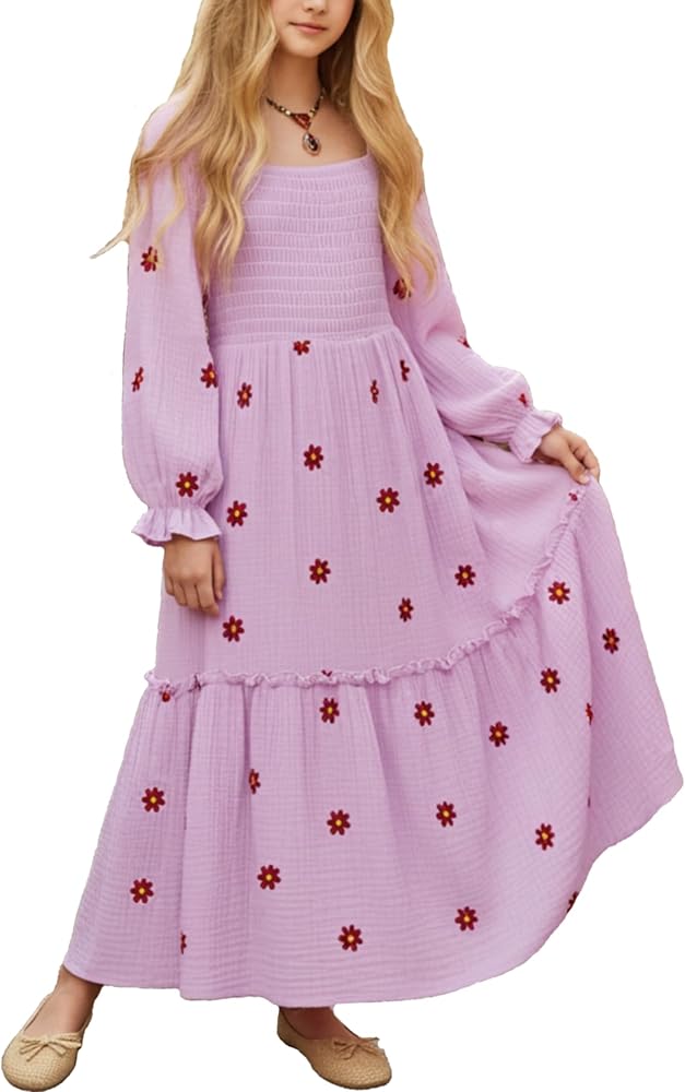 تصميم بوهو الأنيق مع التطريز الأزهار: يلتقط هذا اللباس البوهو للبنات نظرة حرة وعصرية مع نسيج القطن بنسبة 100 ٪ وتطريز ديزي الدقيق. يتميز هذا الفتاة Maxi ، التي تتميز بقاع متدرج ، صد ذي صخور وخط الرقبة المربع ، لمسة من سحر البوهيمي إلى خزانة ملابسك الأساسية. مثالي لكل من الفتيات الصغيرات والكبيرات اللائي يحبن المرح والأساليب الأنيقة