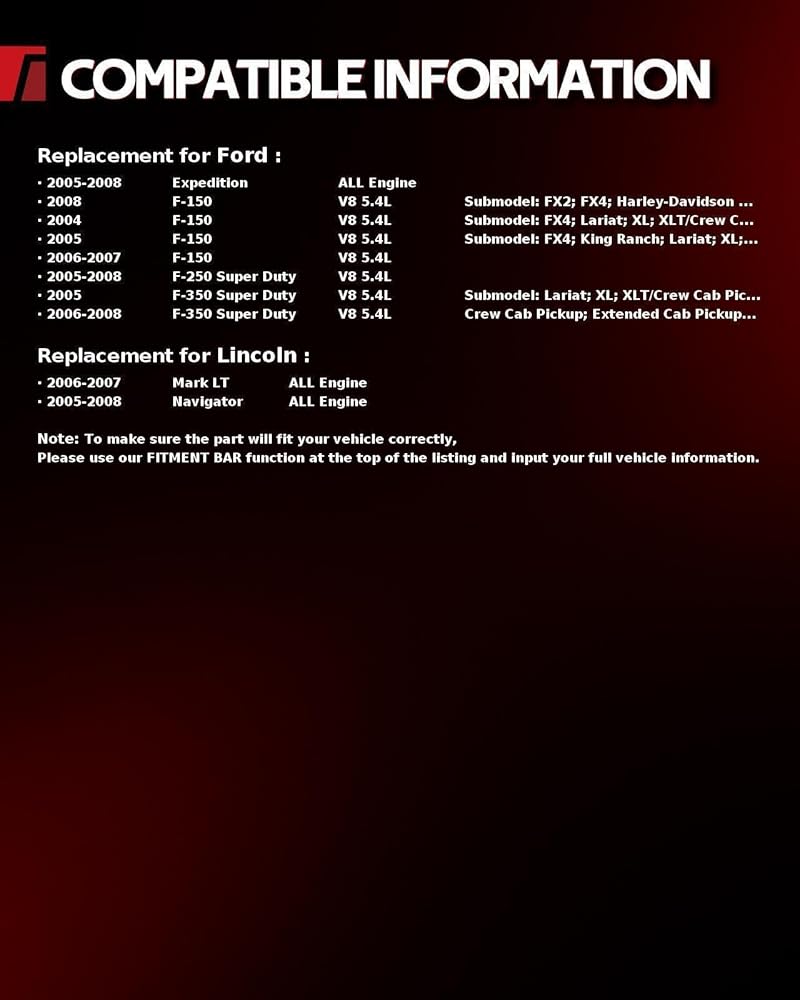 COMPATIBILITY:The timing chain kit fit for 2004-2008 Ford F-150, 2005-2008 Ford Expedition, 2005-2008 Ford F-250 Super Duty, 2005-2008 Lincoln Navigator, 2006-2007 Lincoln Mark LT, 2005-2008 Ford F-350 Super Duty
