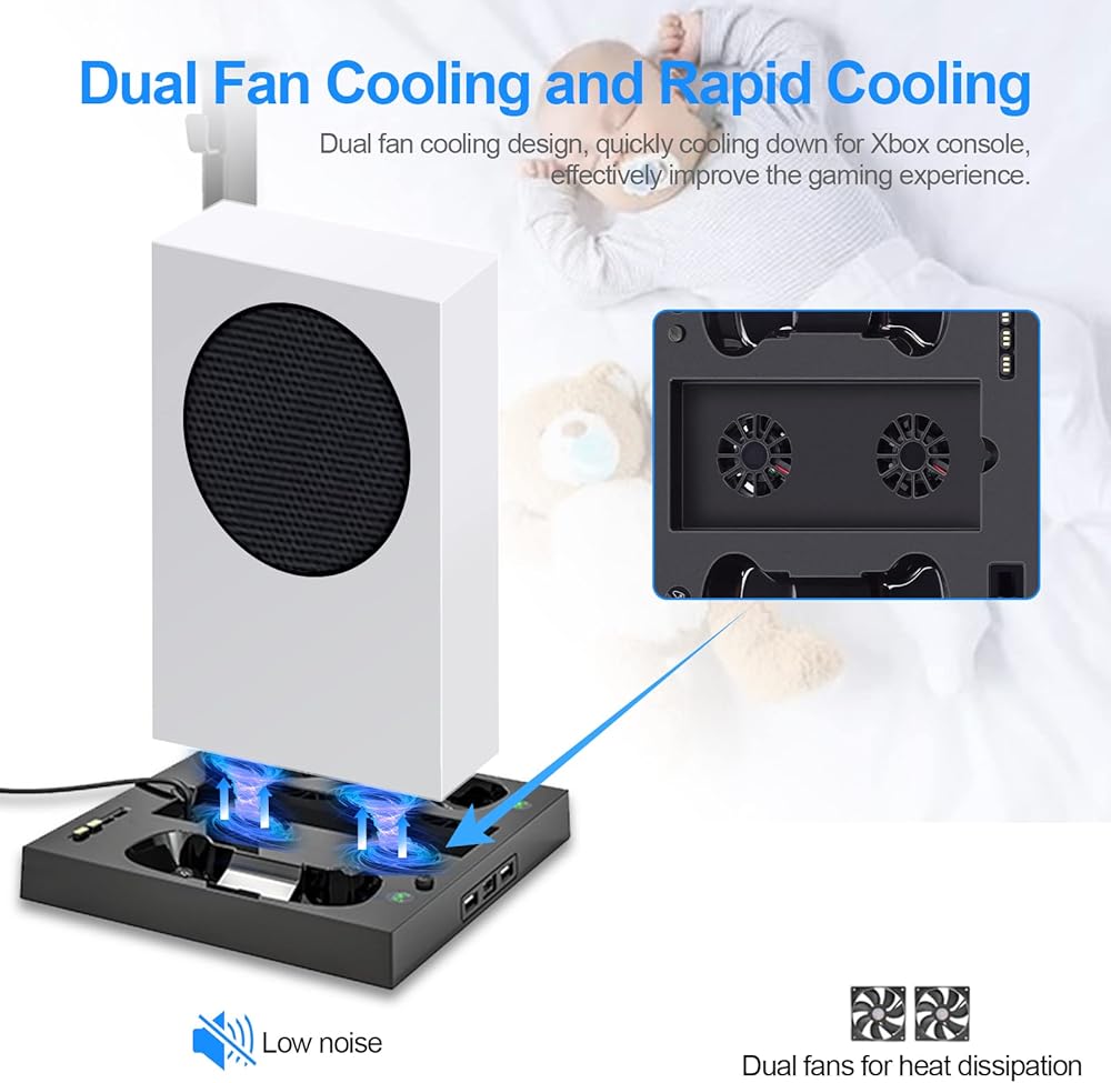[ملحقات مثالية لجهاز Xbox Series S] - حامل تبريد اكس بوكس متعدد الوظائف مصمم خصيصًا لوحدة تحكم ألعاب اكس بوكس سيريز اس وأجهزة التحكم في سلسلة اكس بوكس اس. تناسب سلسلة اكس بوكس اس الخاصة بك بشكل مثالي. حافظ على وحدة تحكم ألعاب اكس بوكس سيريز اس ووحدة التحكم اللاسلكية وسماعة الألعاب في وضع رأسي، وهو مناسب جدًا لك للوصول إليه. هذا هو الحل الأكثر اكتمالاً للتبريد والشحن والتنظيم لسلسلة اكس بوكس الخاصة بك. استمتع بلعبتك! (اكس بوكس سيريز اكس غير مدعوم)