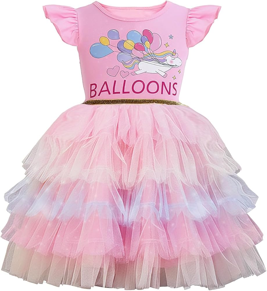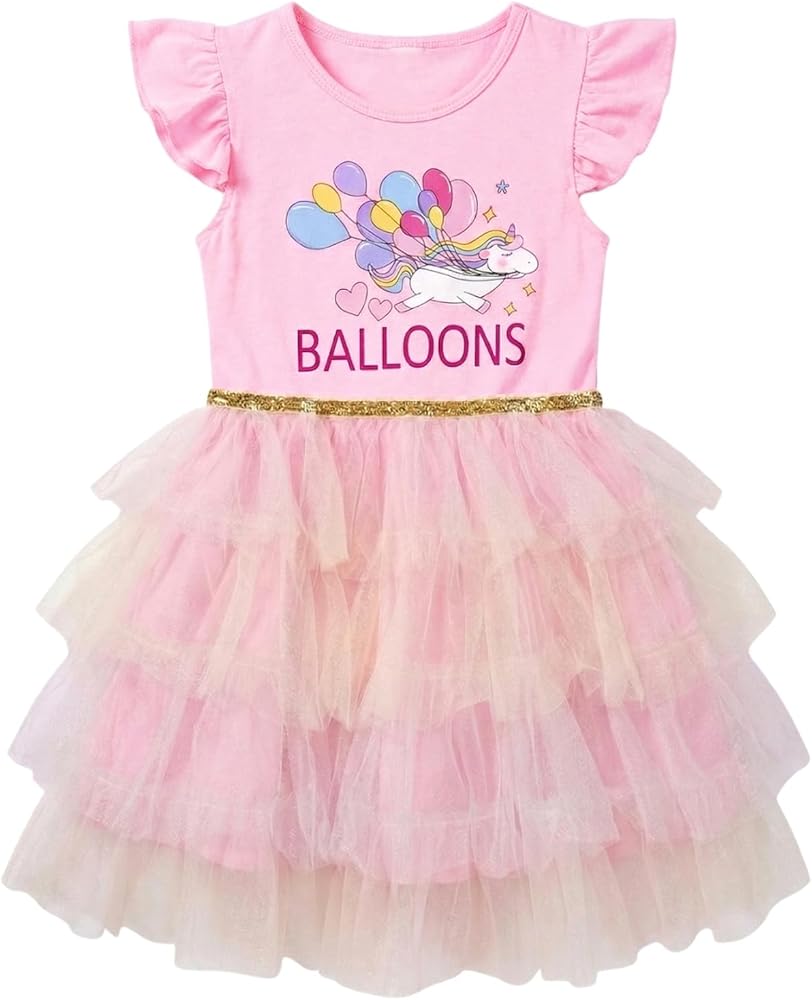 Danvren Princess Dress for Toddler Girls Sleeveless Ruffle Sleeve Tulle Dresses Casual Summer Outfit for Girl 3-6 Years