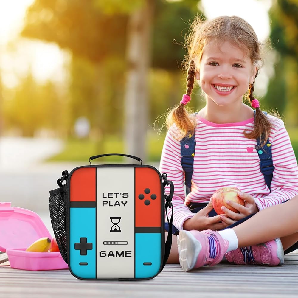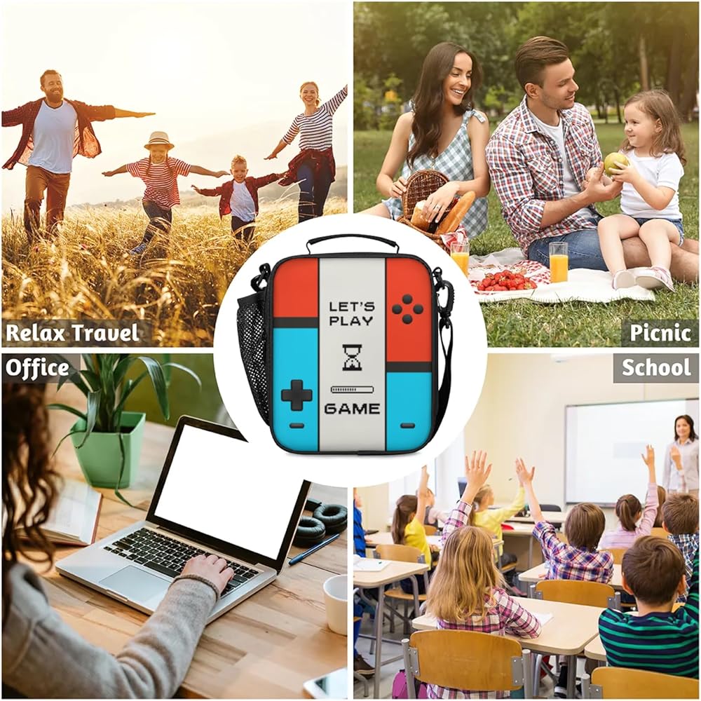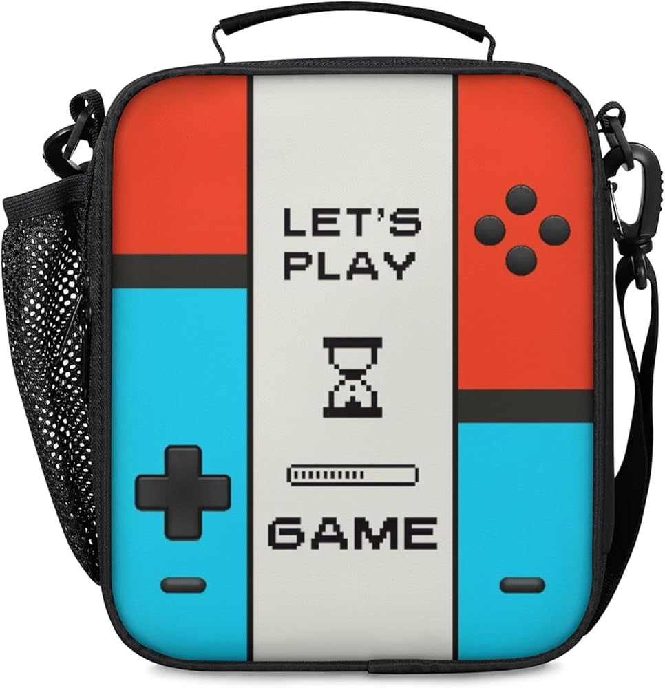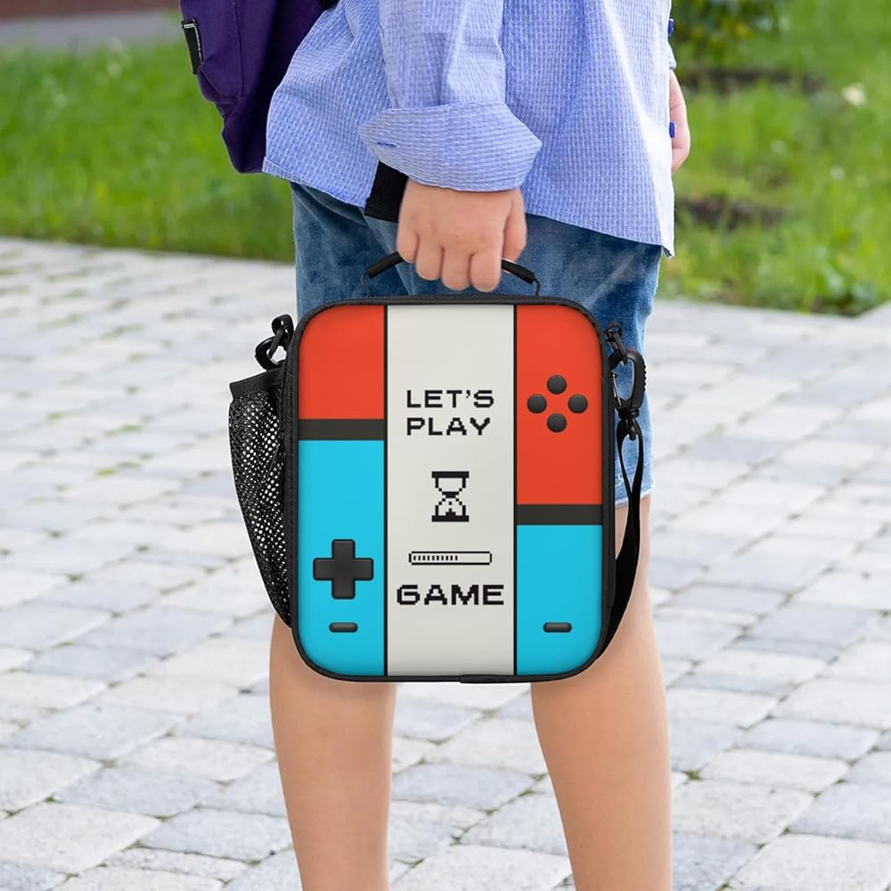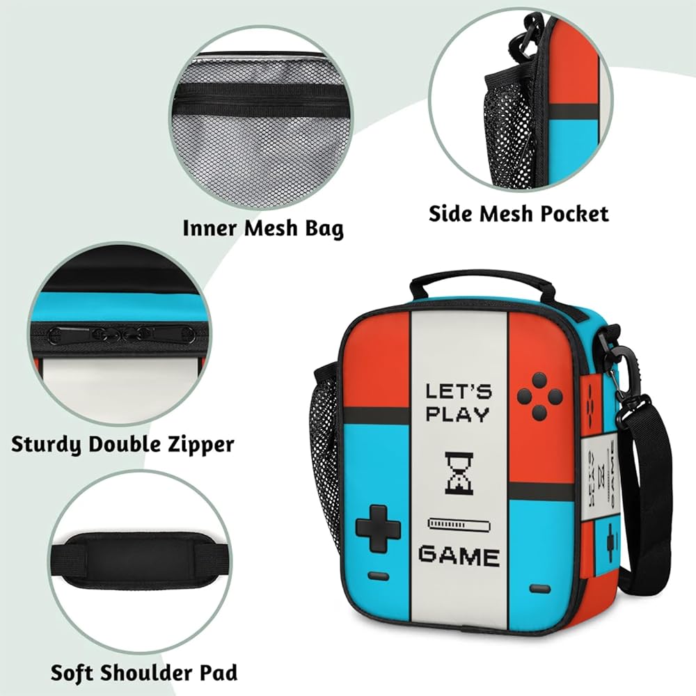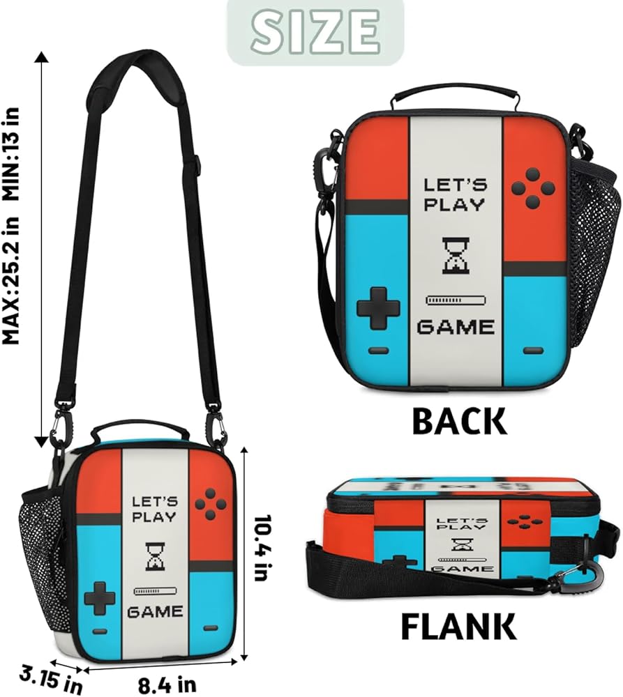 صناديق الغداء الأولاد لمدرسة فيديو ألعاب مراقب كيس غداء معزول معزول محمولة مع حزام كتف قابل للتعديل وحامل زجاجة ماء للعمل النزهة على الشاطئ