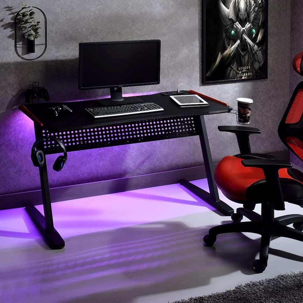 طاولة ألعاب بسيطة للاسترخاء مع منفذ USB، باللون الأسود والأحمر