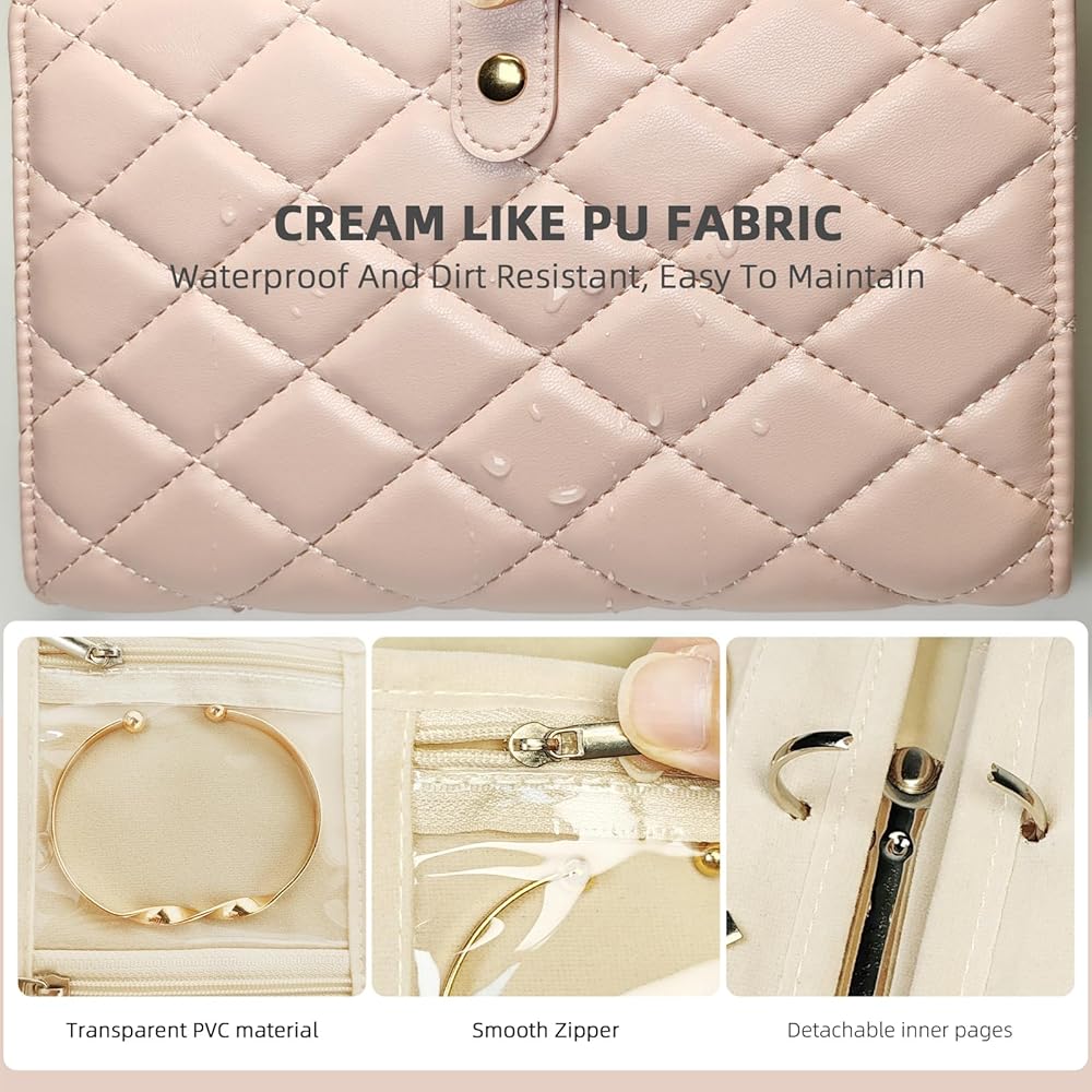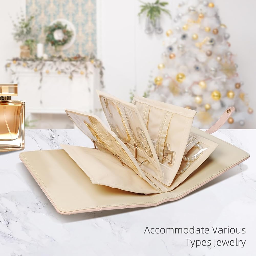 🌟【 علبة سفر المجوهرات الكل في واحد】 الحفاظ على قلاداتك ، حلقاتك ، وأقراط خالية من التشابك وآمنة! تحتوي هذه المحفظة الأنيقة على 5 صفحات مبطنة مخملية قابلة للإزالة مع السوستة الفردية-لا توجد مجوهرات أو خدوش أكثر. مثالي للسفر ، والاستخدام اليومي ، والهدايا!