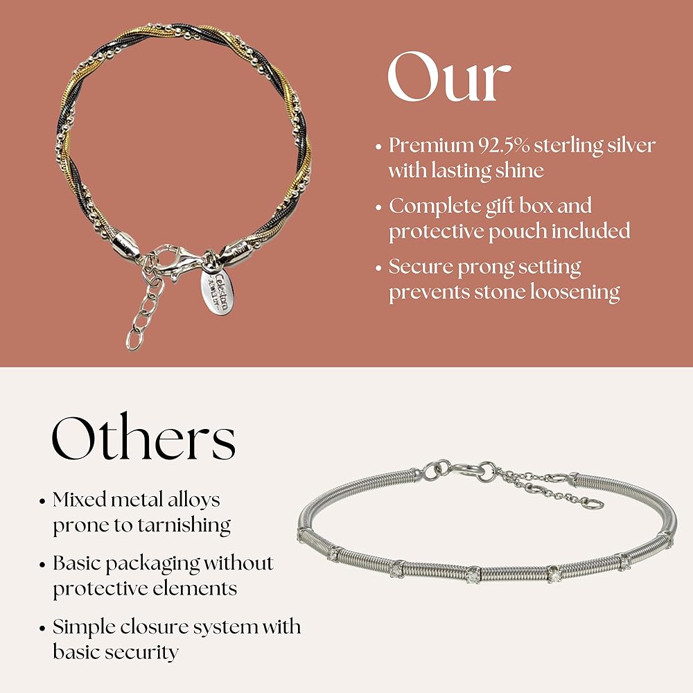 Our signature 925 sterling silver jewelry showcases intricate braided patterns handcrafted by skilled Italian artisans. Each piece features precisely engineered links that create a fluid, graceful appearance, while the professional polish brings out a brilliant shine that catches light from every angle. The silver jewelry set combines classic design with modern sophistication, making it perfect for both everyday wear and special occasions.