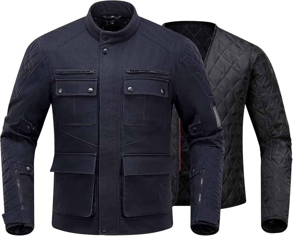 【نمط فريد من نوعه】 سترة الدراجات النارية هذه تمزج جماليات ملابس العمل القديمة مع الميزات الواقية لسترة ركوب ، وتعرض شخصيتك وذوقك المميزة. يضيف نمط شبكة الماس على الكتفين نمطًا إلى المظهر. جيوب مصممة بعناية تعزز الأجواء الرجعية ، مما يسمح لك بالتعبير عن الذوق أثناء الركوب