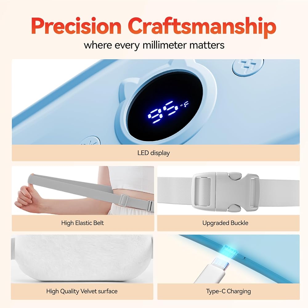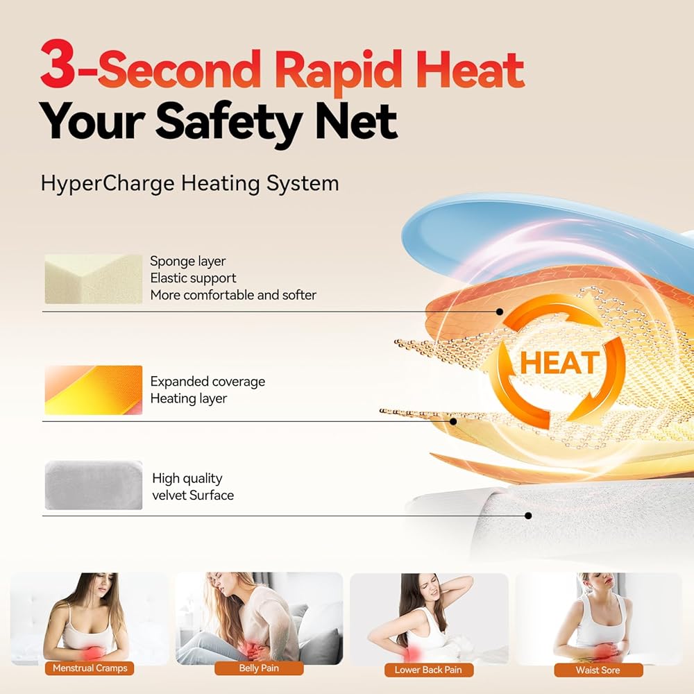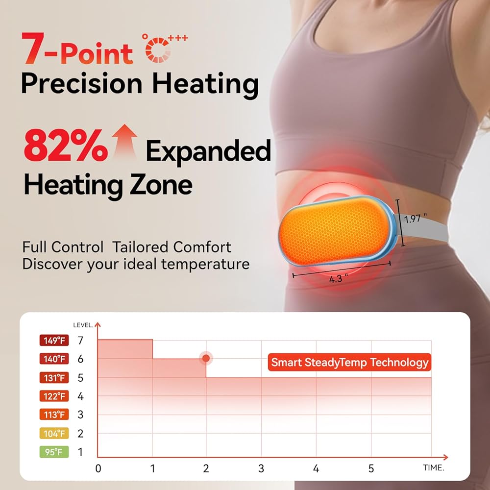 التدفئة والاهتزاز من 7 مستويين: تستهدف 7 إعدادات الحرارة القابلة للتعديل وأساليب الاهتزاز انخفاضًا في البطن مباشرة. قل وداعا للتشنجات! ملاحظة: لوحة التدفئة للاستخدام الأول ، نقترح البدء من أدنى تقنية استشعار في مستوى درجة الحرارة ، مما يوفر حرارة مهدئة تخفيف الانزعاج الشهرية بشكل فعال