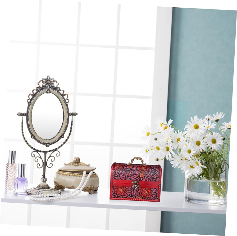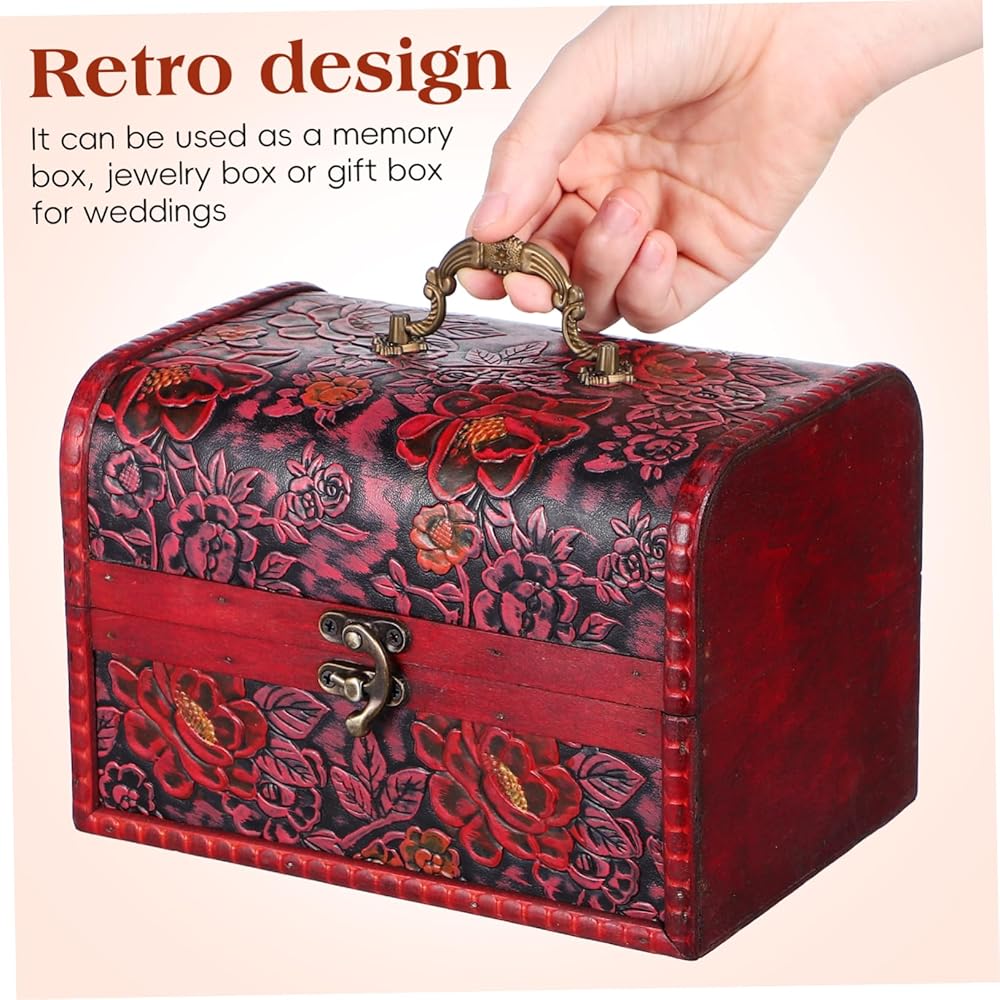 صندوق مجوهرات خشبي خمر مع نمط زهرة منقوش صندوق الكنز المزخرف لغرفة نوم المنزل منظم التذكار لعرض المجوهرات
