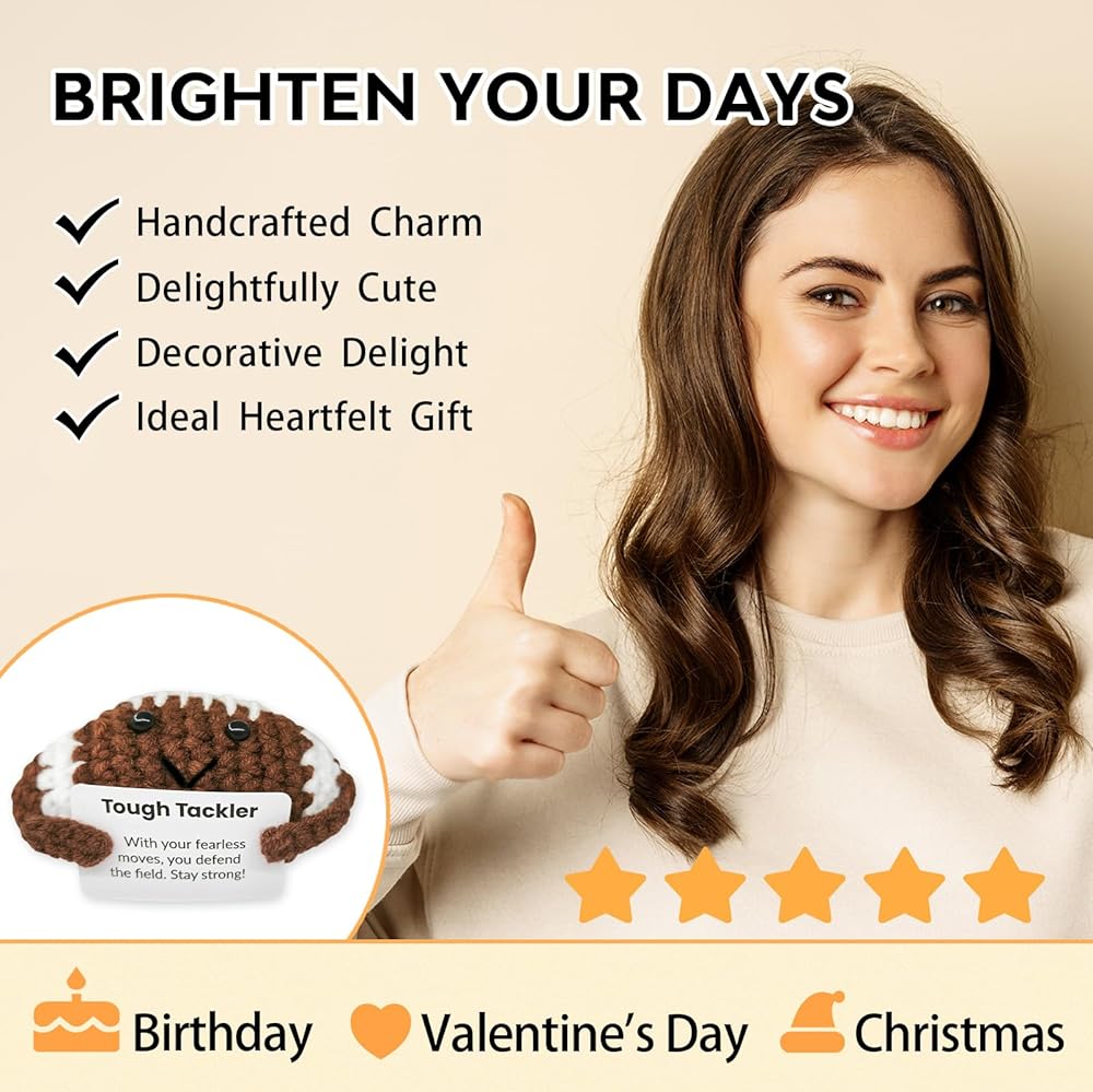 【صديق الكروشيه البهيج】 هذه الدمية المصنوعة يدويًا تشع الإيجابية ، وتوفر الراحة والفرح في الحياة اليومية. يذكرك وجود التواجد الصاعد بالتركيز على الجانب المشرق ، مما يساعدك على البقاء متفائلاً ومرونة خلال الأوقات الصعبة.