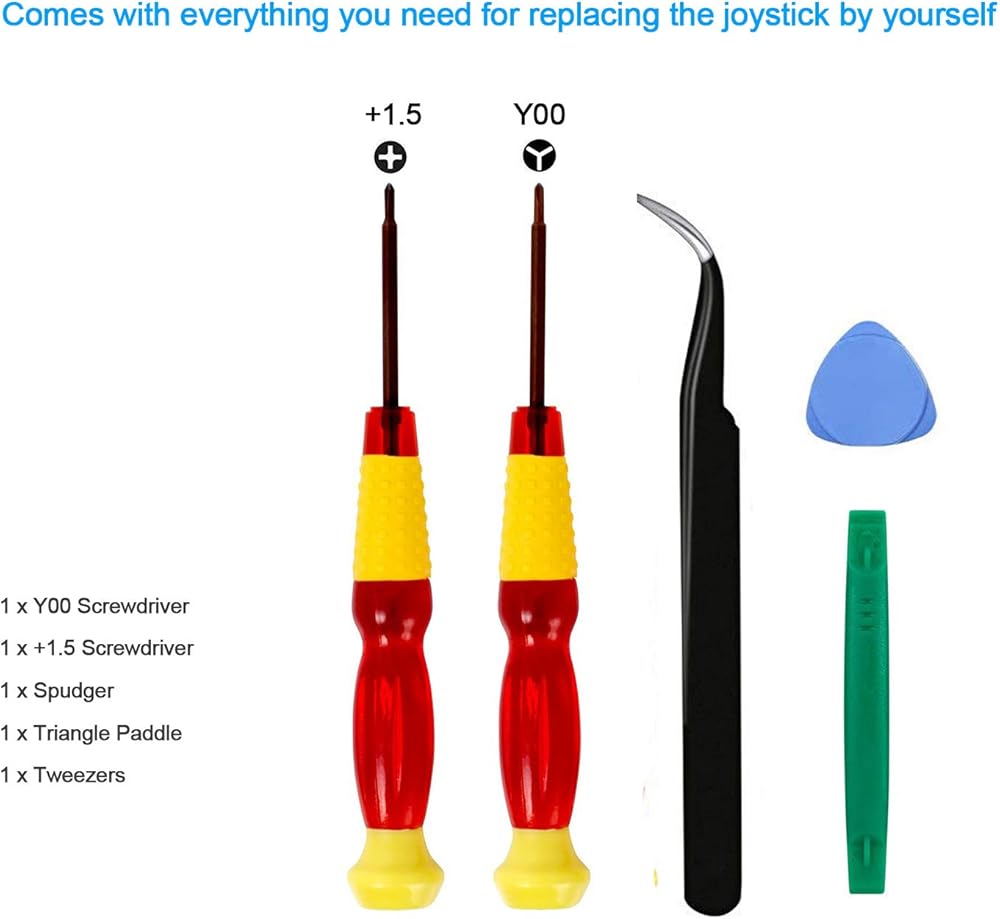 عصا التحكم التناظرية بمقبض تحكم جوي كون من قطعتين باللون الأبيض من شركة فيانك لأجهزة تحكم نينتيندو سويتش لايت جوي كون - مع مجموعة أدوات الإصلاح Y00 ثلاثية الأجنحة، 1.5 مفك براغي، أدوات حصيق، 4 أغطية