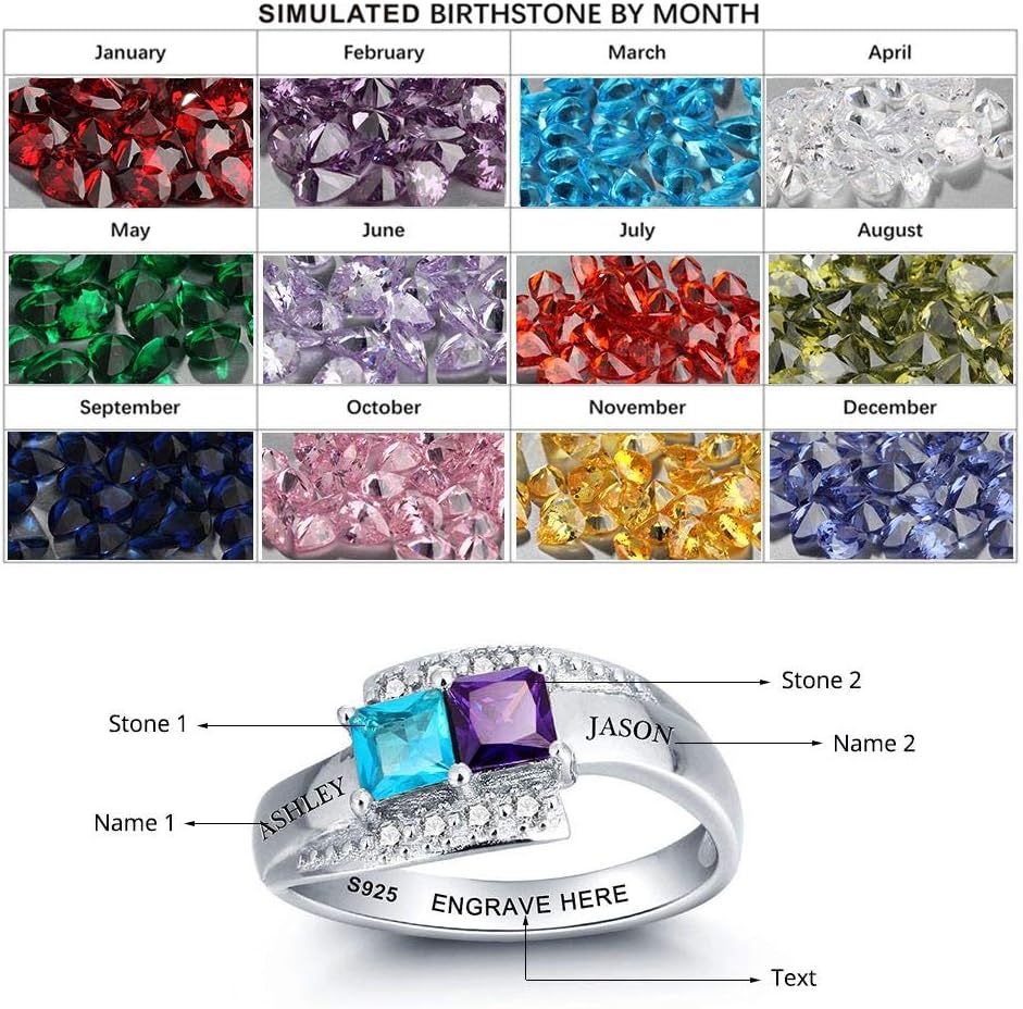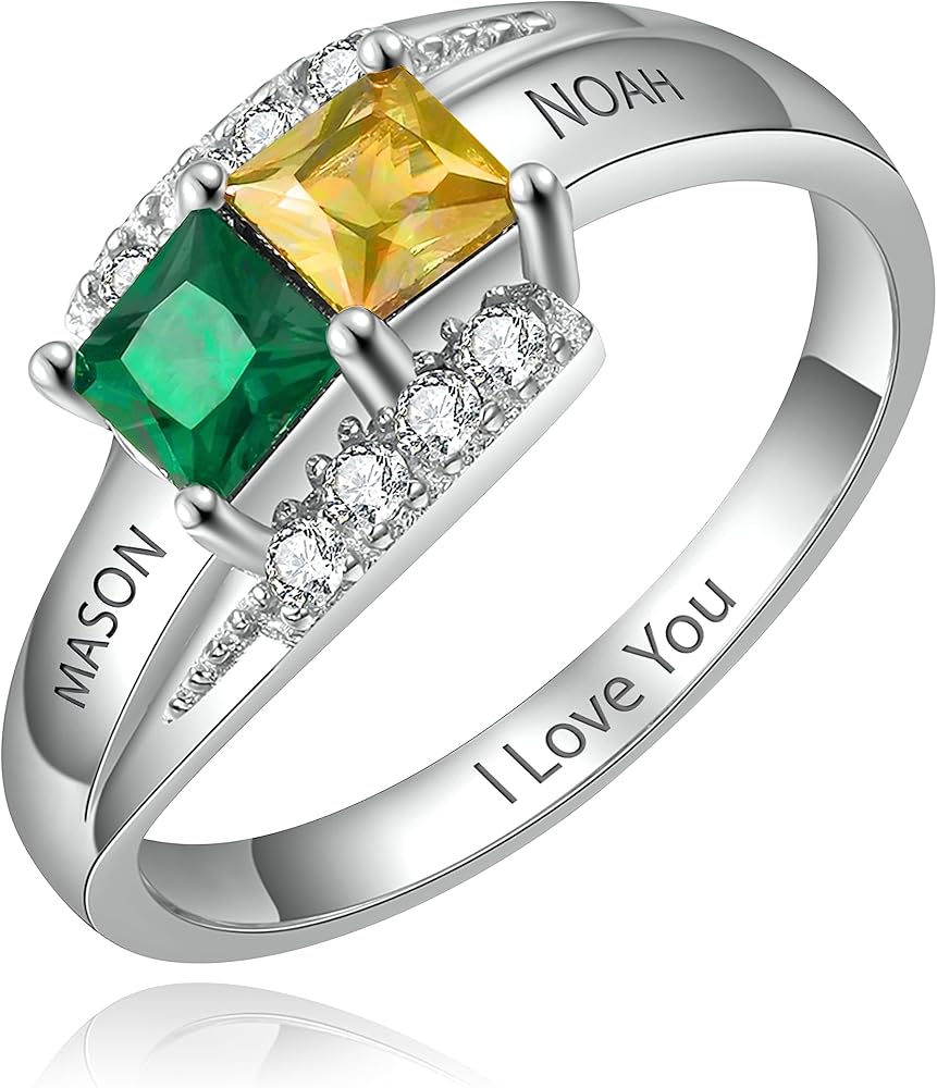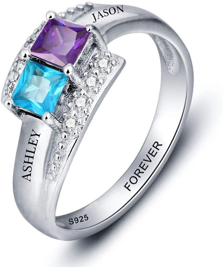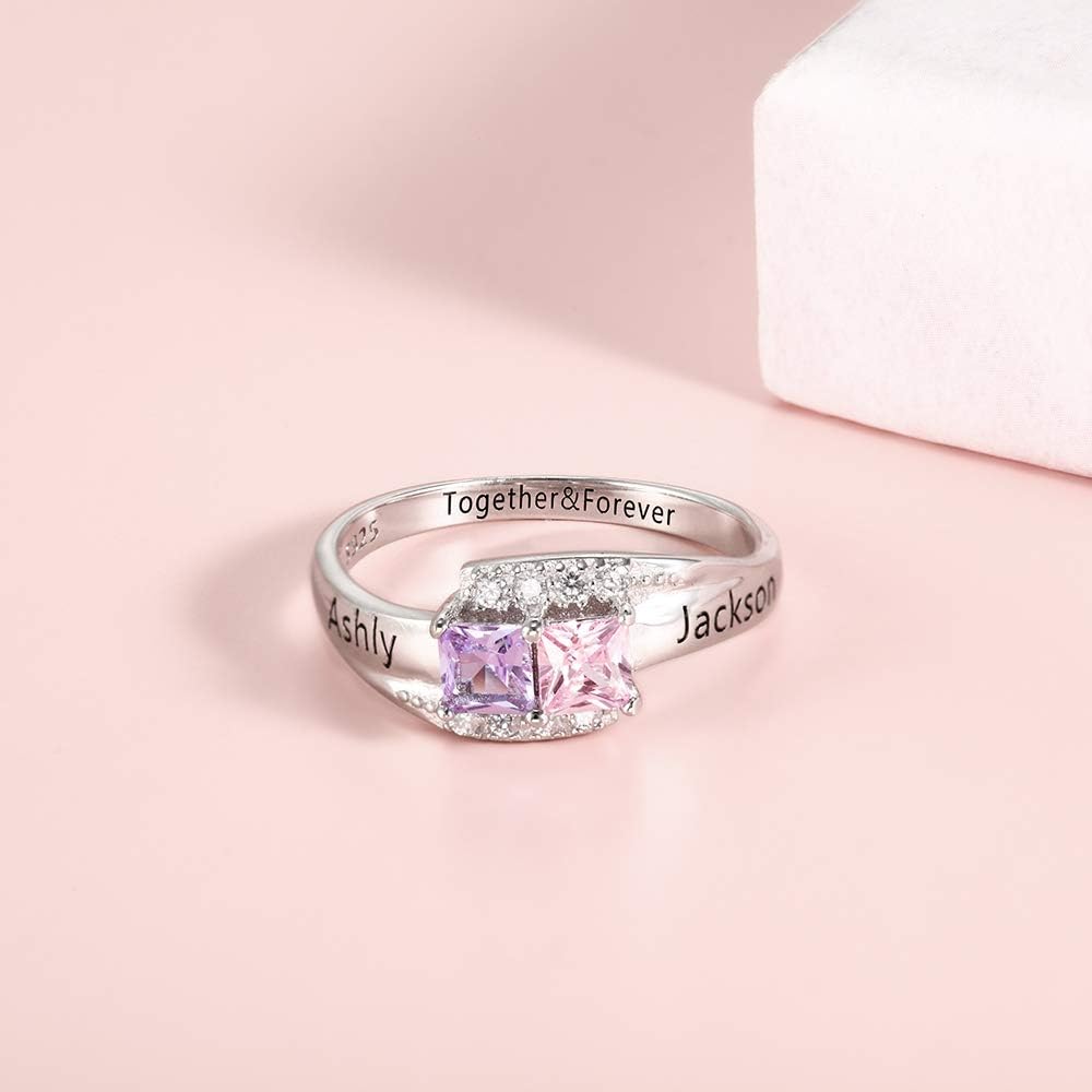 الفضة الاسترليني مخصصة الحجر المولد خاتم محفور. هذه الخاتم الفضي للنساء مرصع مع اثنين من الأحجار المولودة لإنشاء تصميم مدروس