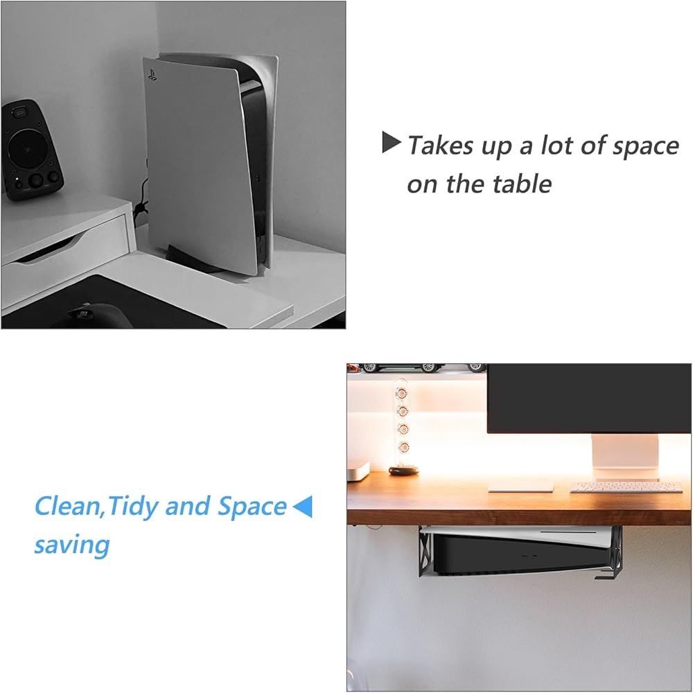 Save Space: Does not take up desktop space and keeps the desktop tidy. The under-table design can prevent children or pets from knocking the ps5 down and plays a hidden protection role.