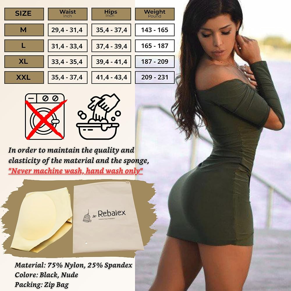 Transform Your Confidence in Seconds Every woman deserves to feel absolutely stunning. That's why we created Rebalex Butt Lifter Shapewear - to give you that extra boost of confidence that changes everything about how you feel. Your Secret to Natural-Looking Curves Imagine slipping into your favorite outfit and loving what you see in the mirror. Our foam padding creates beautiful, natural curves that enhance your body's shape. Feel like the most confident version of yourself. All-Day Comfort Premium materials breathe with your skin and flex with every movement. You'll forget you're wearing them - except when you catch yourself looking amazing in the mirror. Invisible Under Everything Seamless design disappears under any outfit - bodycon dresses, skinny jeans, anything. No visible lines, just smooth curves that look completely natural. The Freedom to Wear Anything No more wondering if an outfit will work. Every piece of clothing becomes flattering: That bodycon dress? Time to wear it. Those jeans that felt meh? Your new favorites. Any outfit? We've got you covered. Premium Quality Materials: 87% Polyester, 13% Spandex with Cotton Crotch Colors: Nude and Black Sizes: S, M, L, XL Care: Hand wash only Whether heading to meetings, dates, or errands, you deserve to feel incredible. Works for every body type and occasion. Ready to transform how you feel? Choose your size and experience the difference today!