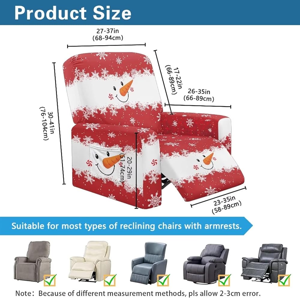 • 【Size】Suitable for 27-37" back width,30-41" height, 23-35" bottom width,26-35" side width, please refer to the measurement picture before purchase.His 4 pieces recliner chair cover is elastic enough to fit for most standard recliner chair couch