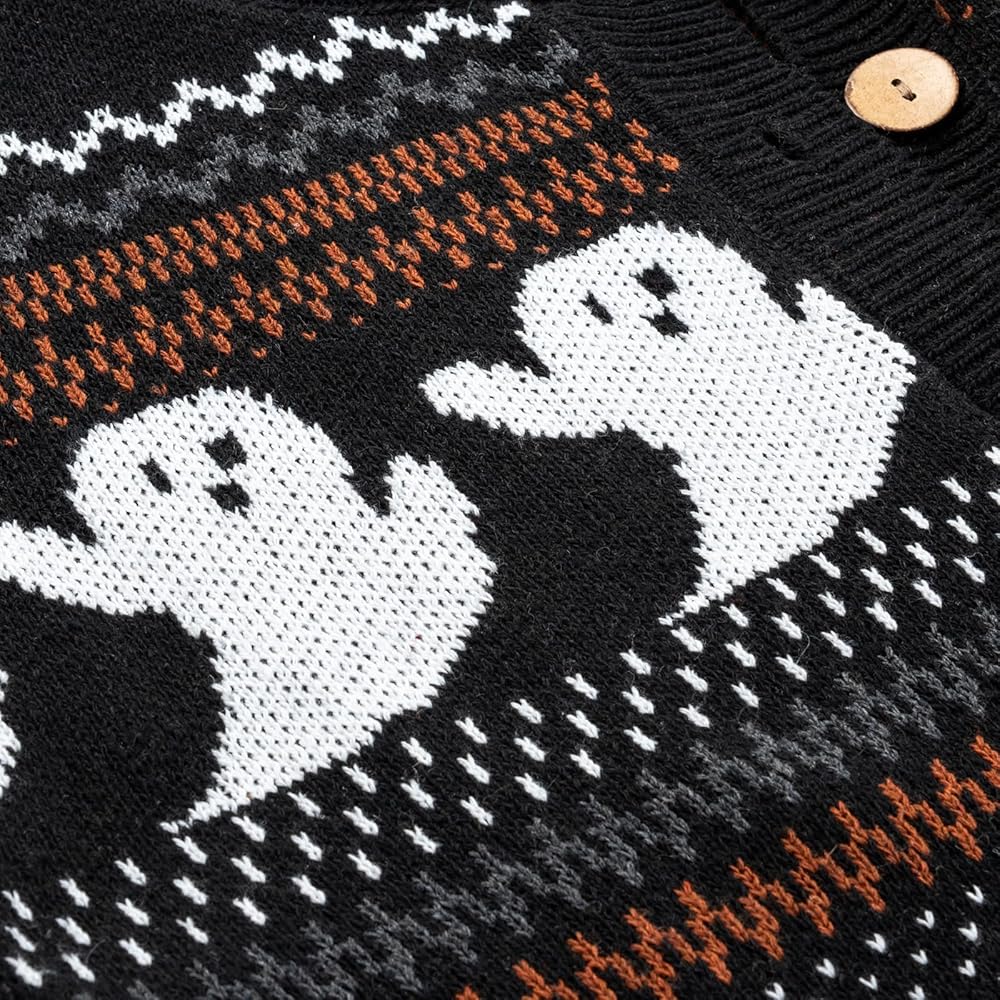 التصميم: تتمتع Cardigan Catgan بالسيدات في Halloween Black Cat تصميمًا أماميًا مفتوحًا وأزرار مع ثنى أنيق ، مما يجعل من السهل وضعه على قمم أو فساتينك المفضلة.