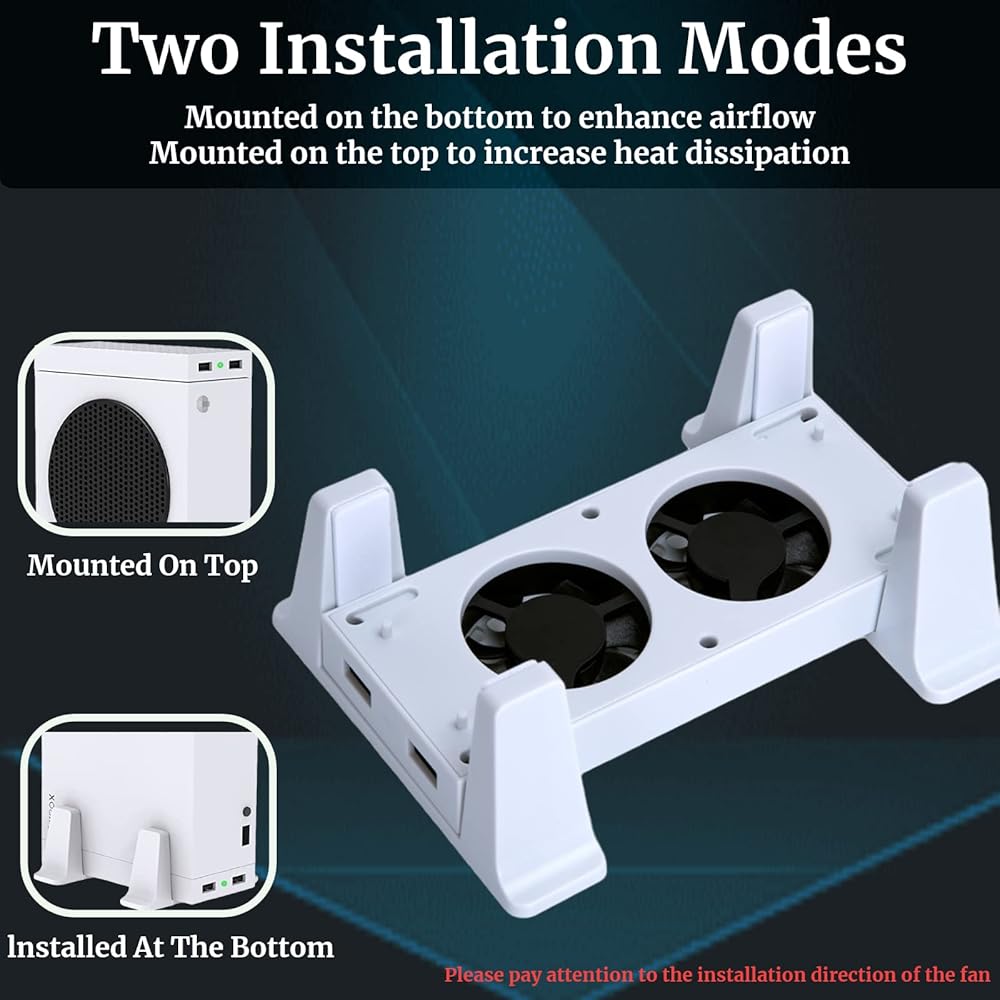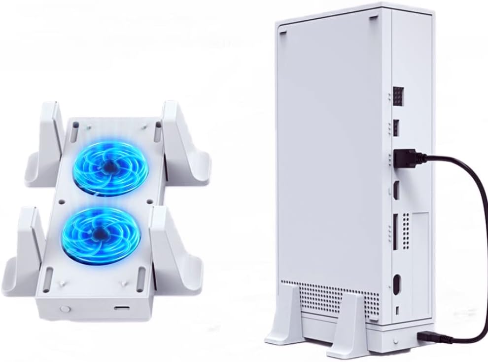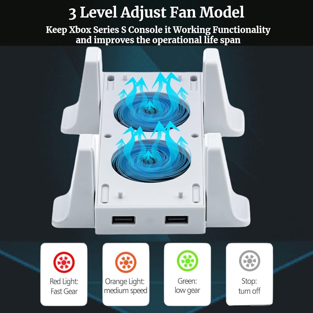 حامل مروحة تبريد لوحدة تحكم Xbox Series S، حامل رأسي أرفين مزدوج الأغراض مع نظام تبريد سريع، 3 مستويات سرعة قابلة للتعديل، 2 منافذ USB إضافية، 2 حامل مضاد للانزلاق ومؤشر LED