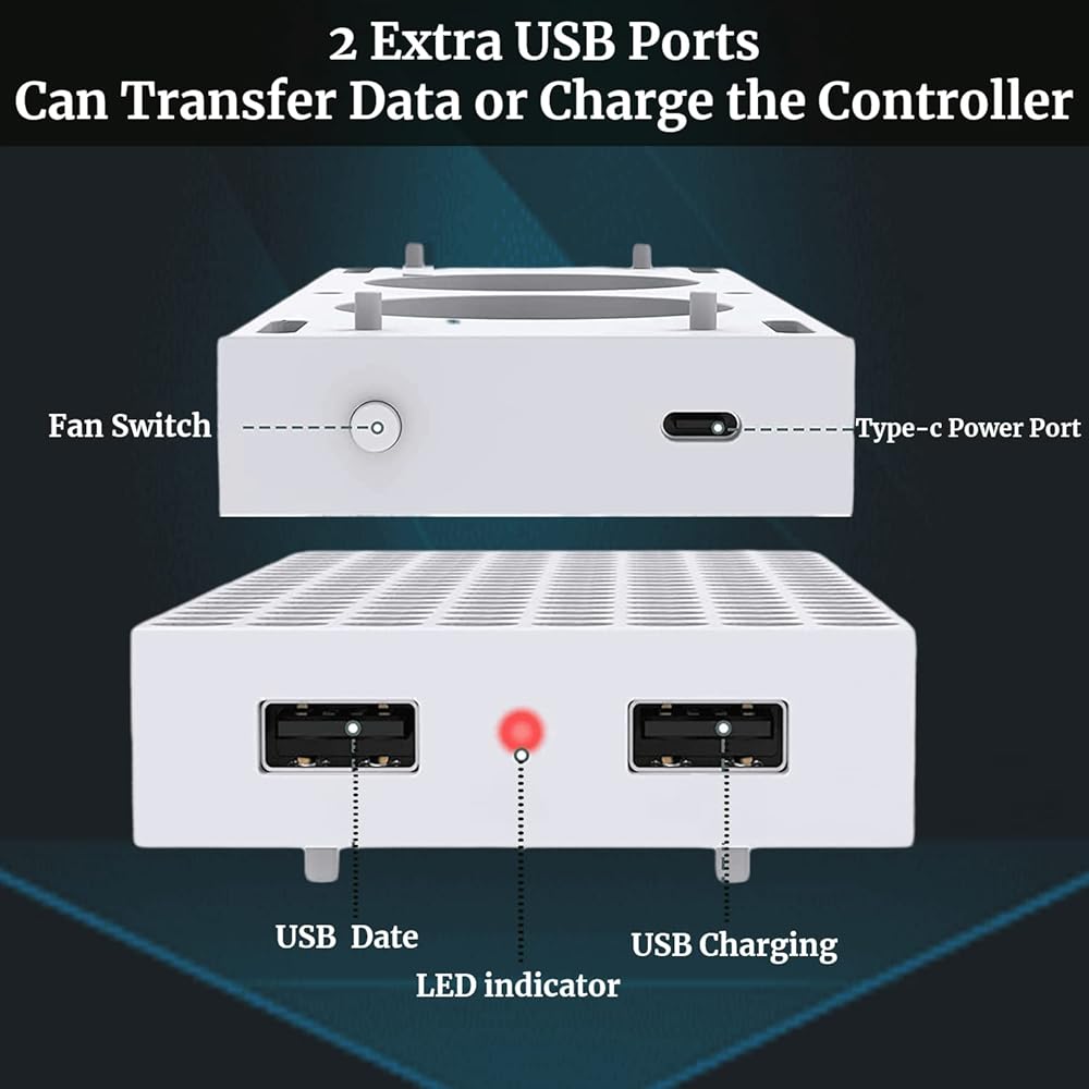 [مروحة تبريد يو اس بي مع منفذي يو اس بي] - مروحة التبريد السريعة لسلسلة إكس بوكس مع منفذ يو اس بي 2.0 لنقل البيانات، يمكنك تحميل أو تحميل بيانات اللعبة من وحدة تحكم سلسلة إكس بوكس إس؛ بالإضافة إلى ذلك، فهي تحتوي على منفذ شحن يو إس بي واحد وكابل شحن يو إس بي من نوع سي لسهولة الشحن وبارد لوحدة تحكم إكس بوكس سيريز إس