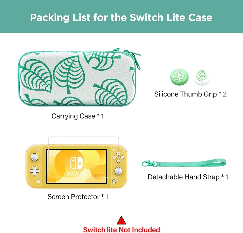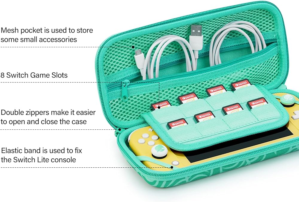 شنطة حمل لجهاز نينتندو سويتش لايت من جينجدو، مجموعة شنطة تخزين واقية 4 في 1 مع 8 فتحات لبطاقات الالعاب لجهاز تشغيل العاب الفيديو الرقمية ليف كروسينج سويتش لايت، تتضمن واقي شاشة واغطية مفاتيح وحزام يد