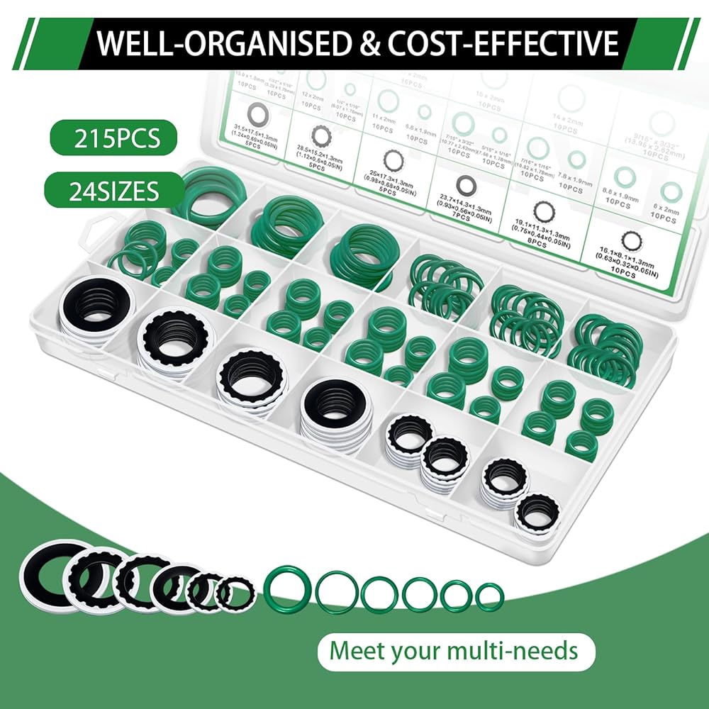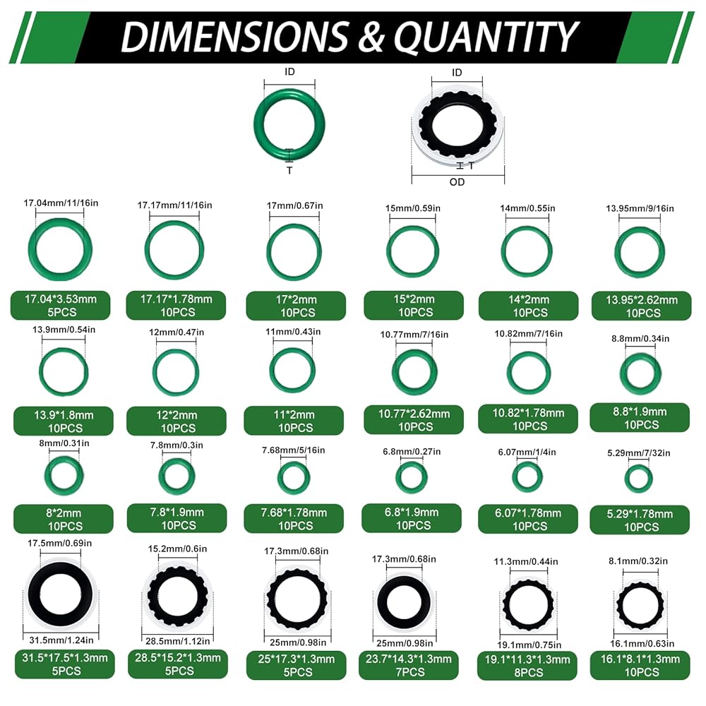 أحجام متنوعة: تتضمن غسالات ختم الضاغط A/C ومجموعة تشويش O-Rings 24 أحجامًا ، تقدم تغطية واسعة. إنه متوافق مع احتياجات إصلاح مكونات ضاغط تكييف الهواء المختلفة ويمكن أن تلبي متطلباتك في سيناريوهات الإصلاح المختلفة.