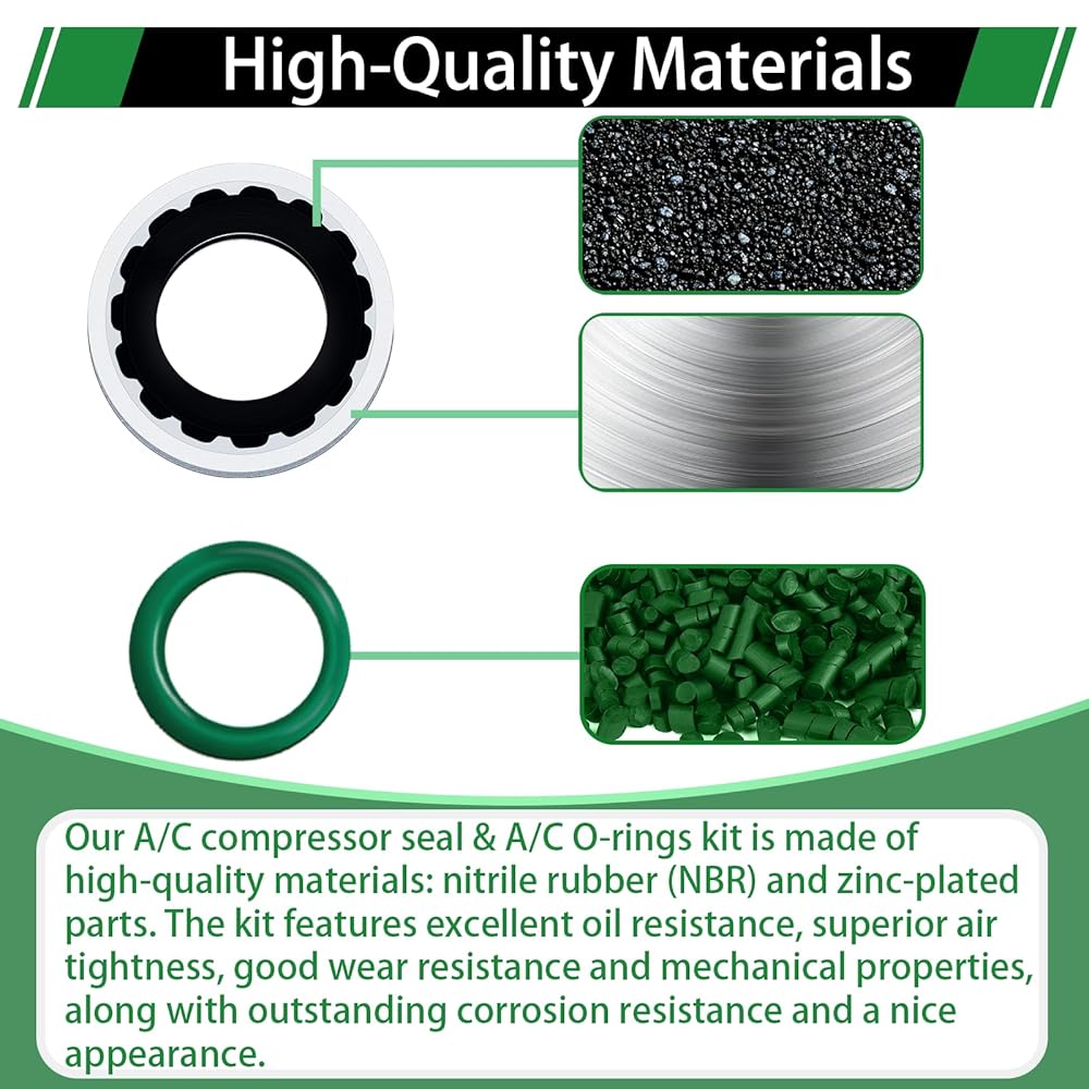 مزايا المنتج: تتميز مواد NBR والزنك المطلية بالزنك المستخدمة في ختم الضاغط A/C و O-Rings Kit مقاومة للصدأ ، ومقاومة الزيت ، ومقاومة التآكل ، ومقاومة الضغط ، ومقاومة الماء ، والصلابة العالية. أنها توفر عمر خدمة طويلة وضمان أداء ختم مستقر.