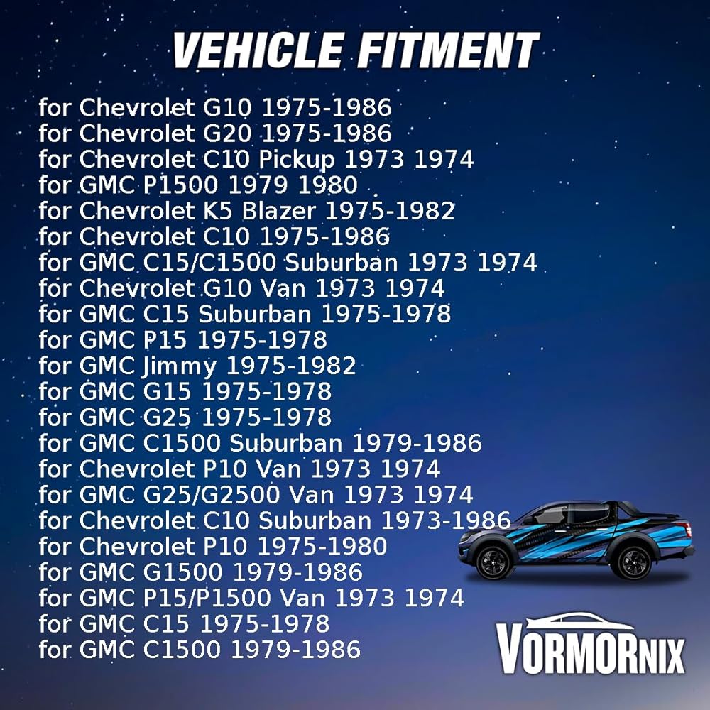 • Perfect Fitment2: بالنسبة لـ GMC C1500 Suburban 1979-1986 لـ GMC G15 1975-1978 لـ GMC G1500 van 1973-1974 for GMC G1500 1979-1974 for GMC G25 1975-1978 for gmc g25 g2500 van 1973-1974 Jimmy 1975-1982 for GMC P15 1975-1978 for GMC P1500 Van 1973-1974 for GMC P1500 1979-1980